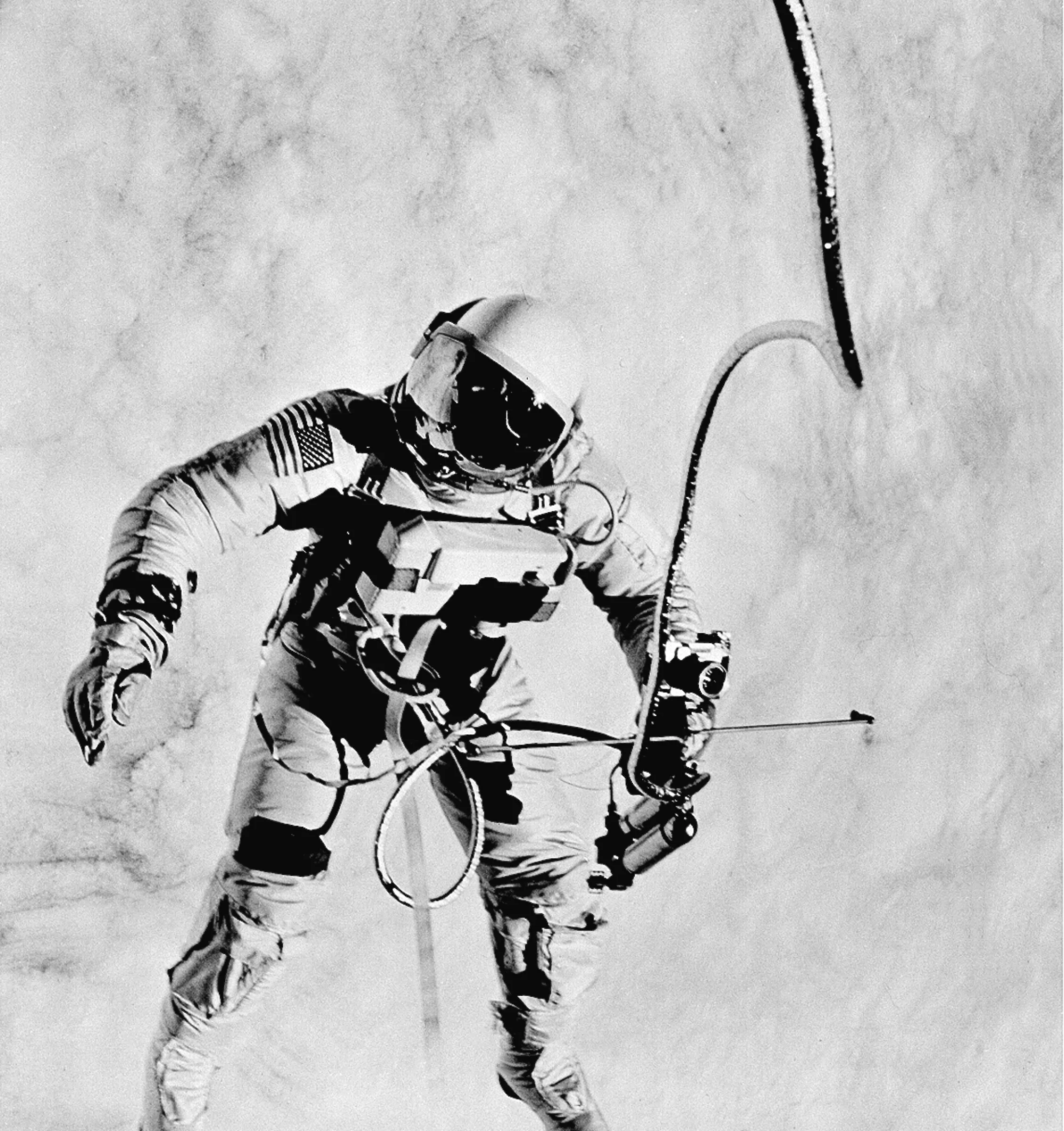 Astronaut Ed White faces the Gemini 4 capsule during his 20-minute space “walk” on June 8, 1965. In his right hand, White holds his oxygen space gun to maneuver around the capsule. A 35-mm camera is attached to the space gun. Astronaut James McDivitt took this photograph with a Hasselblad camera. (Photo by James McDivitt/AP Photo/NASA)