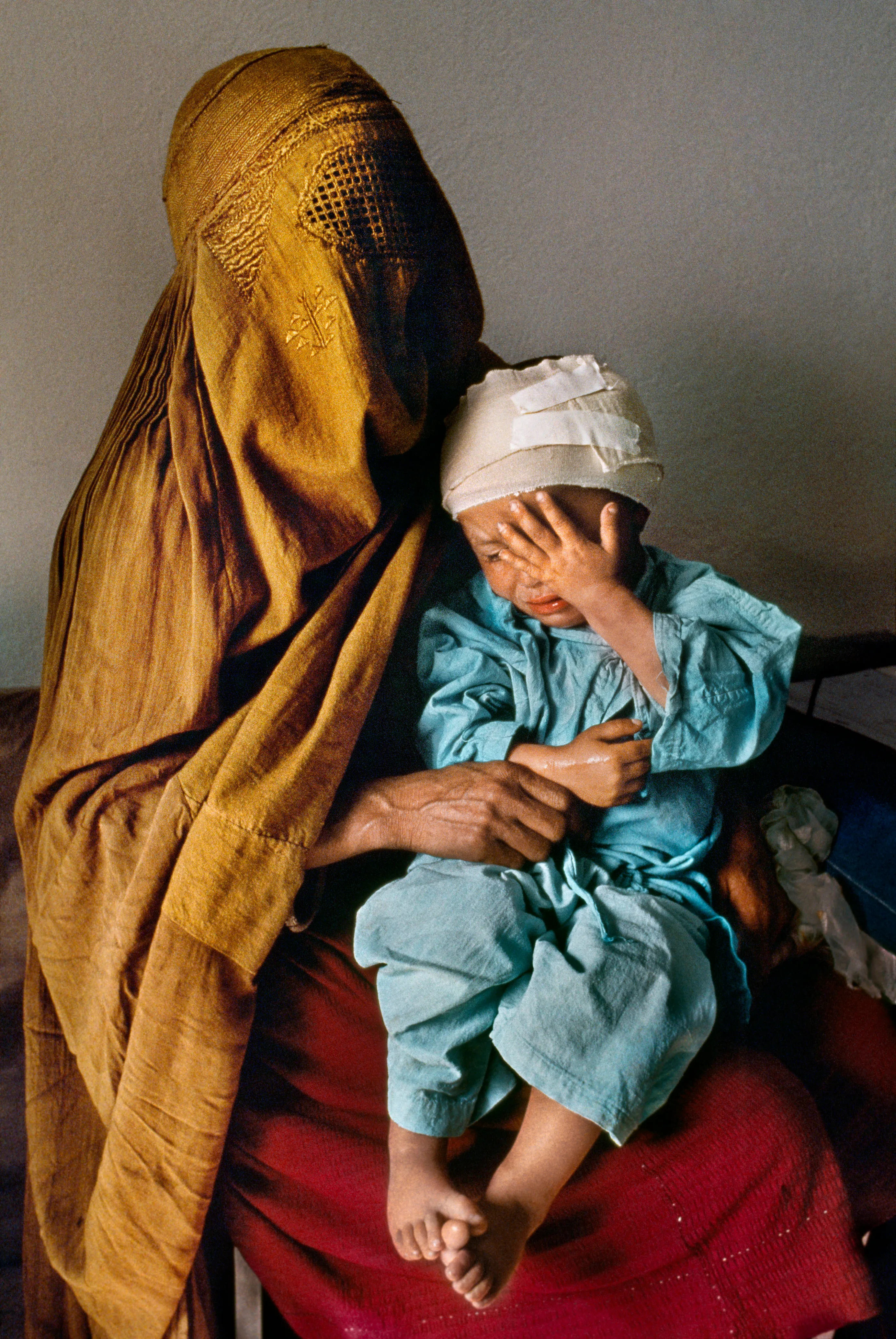 Kabul, 1992. A mother holds her two-year-old son, who was grazed by a stray bullet, at Karte Seh surgical hospital. (Photo by Steve McCurry/Taschen/Magnum Photos/The Guardian)