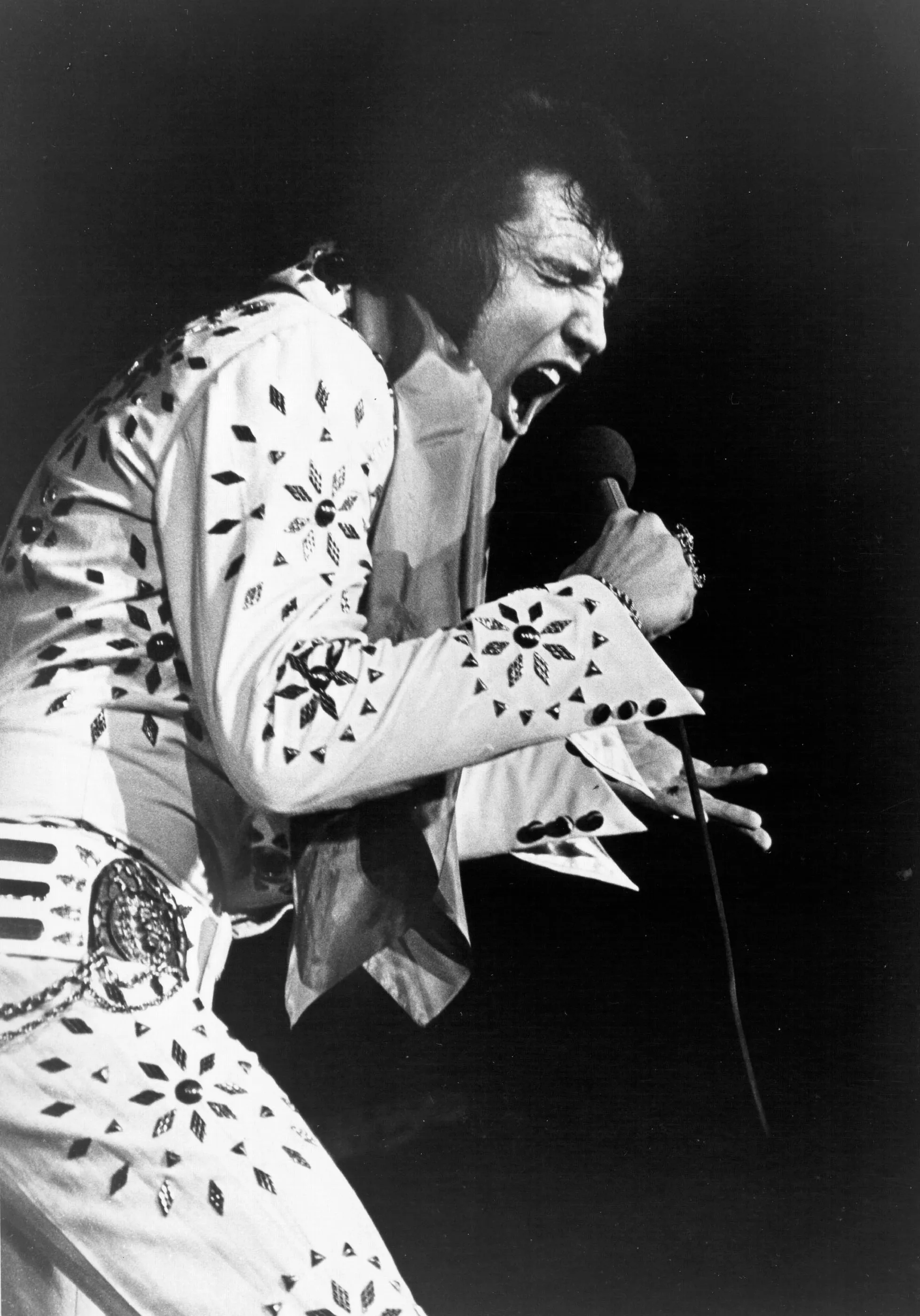 Rock and roll singer Elvis Presley performs on stage in 1972. (Photo by Michael Ochs Archives/Getty Images)