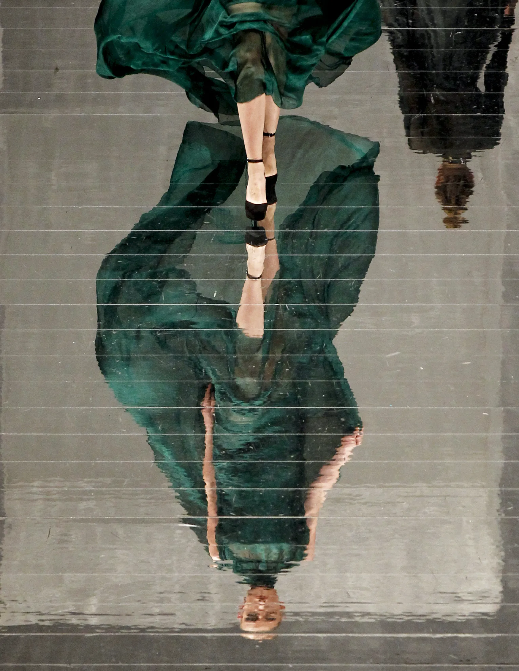 A model wears a creation from Fiziwoo which reflects on a floor as she walks the runway during the Fashion Week Festival in Kuala Lumpur, Malaysia on Friday, August 18, 2017. (Photo by aniel Chan/AP Photo)