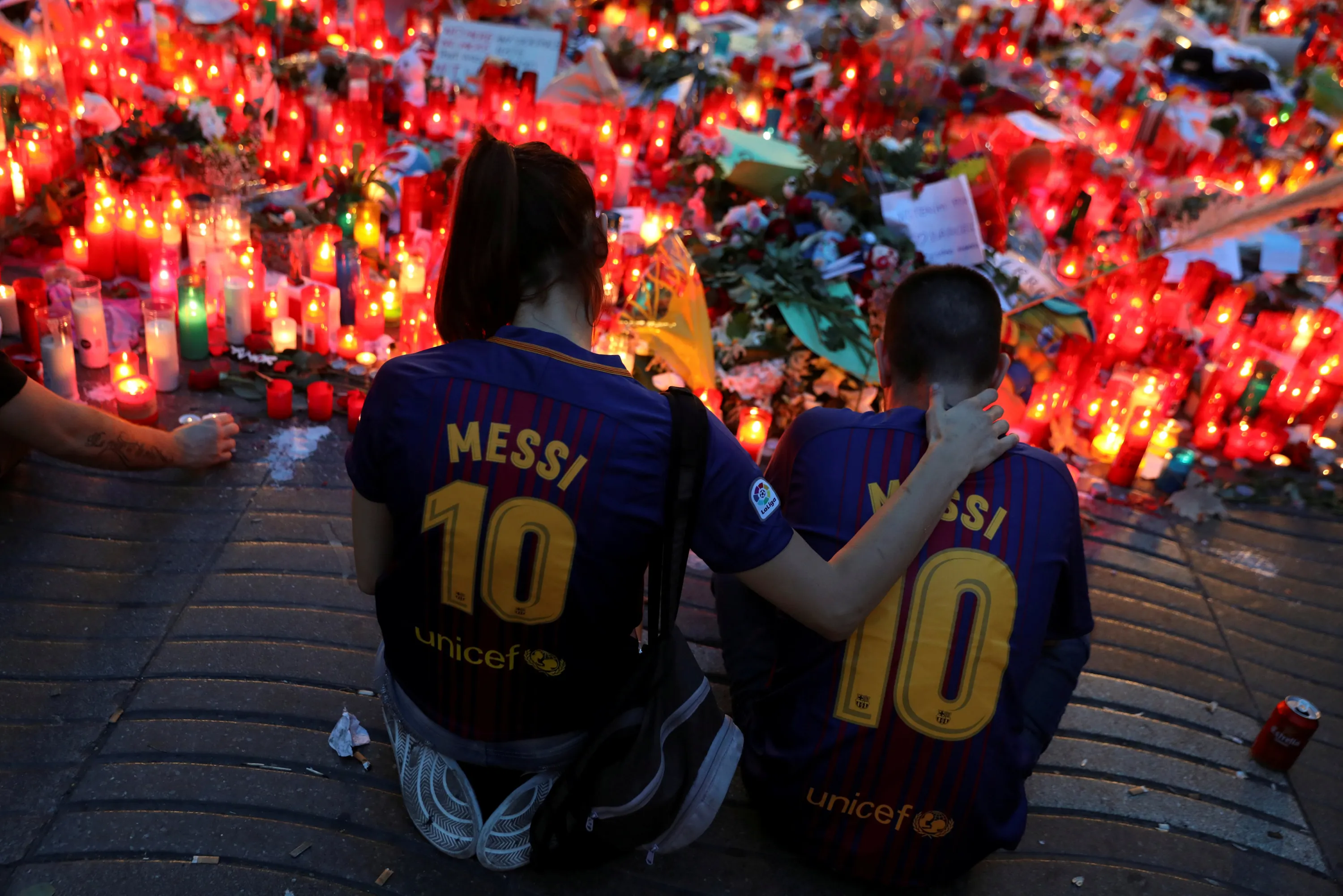 People gather at an impromptu memorial where a van crashed into pedestrians at Las Ramblas in Barcelona, Spain, August 20, 2017. (Photo by Susana Vera/Reuters)