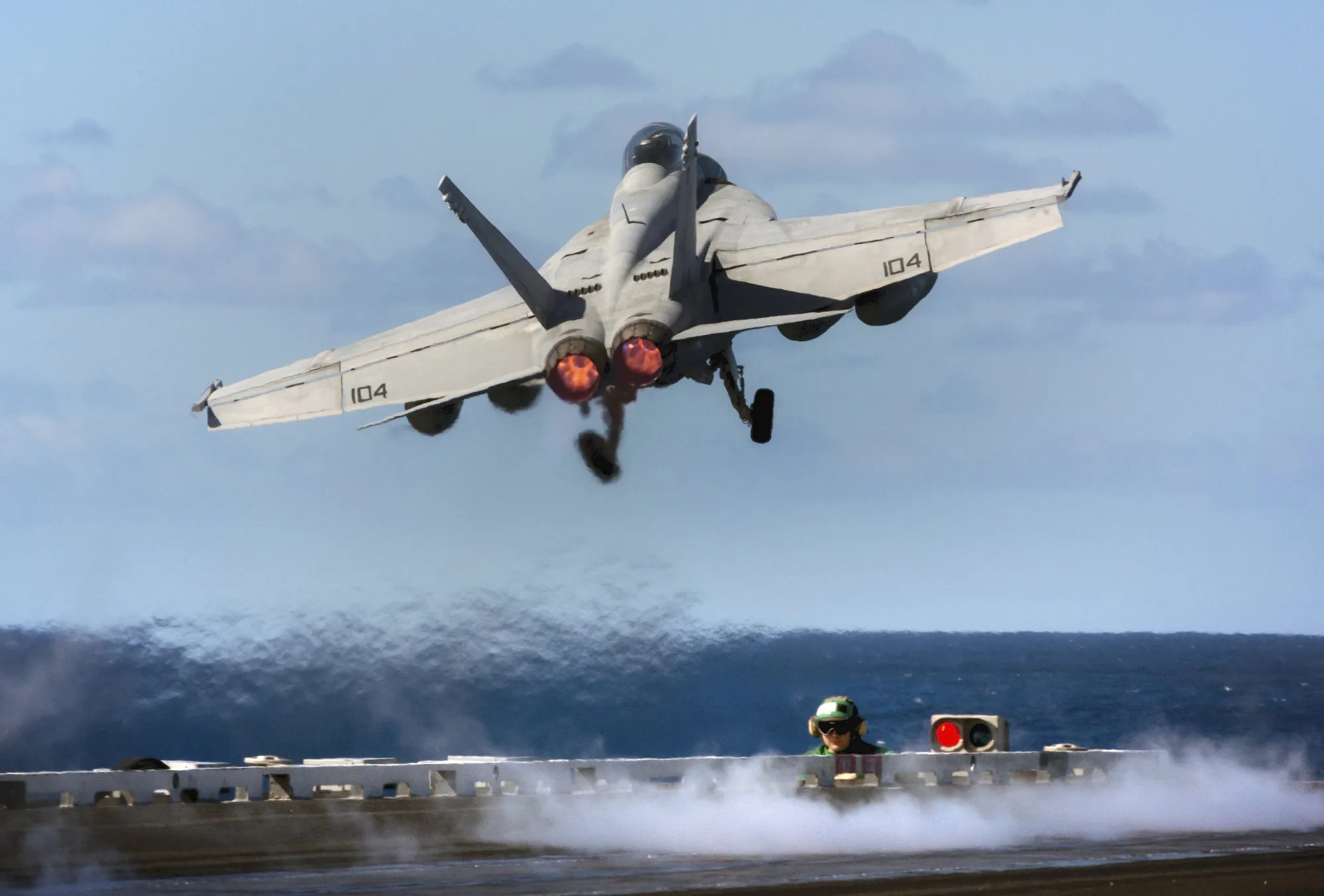 A July 14, 2017 supplied image from the Australian Defence Force of a United States Navy F/A-18E Super Hornet taking off from the flight deck of the USS Ronald Reagan during Exercise Talisman Saber 2017. (Photo by Reuters/Australian Defence Force)