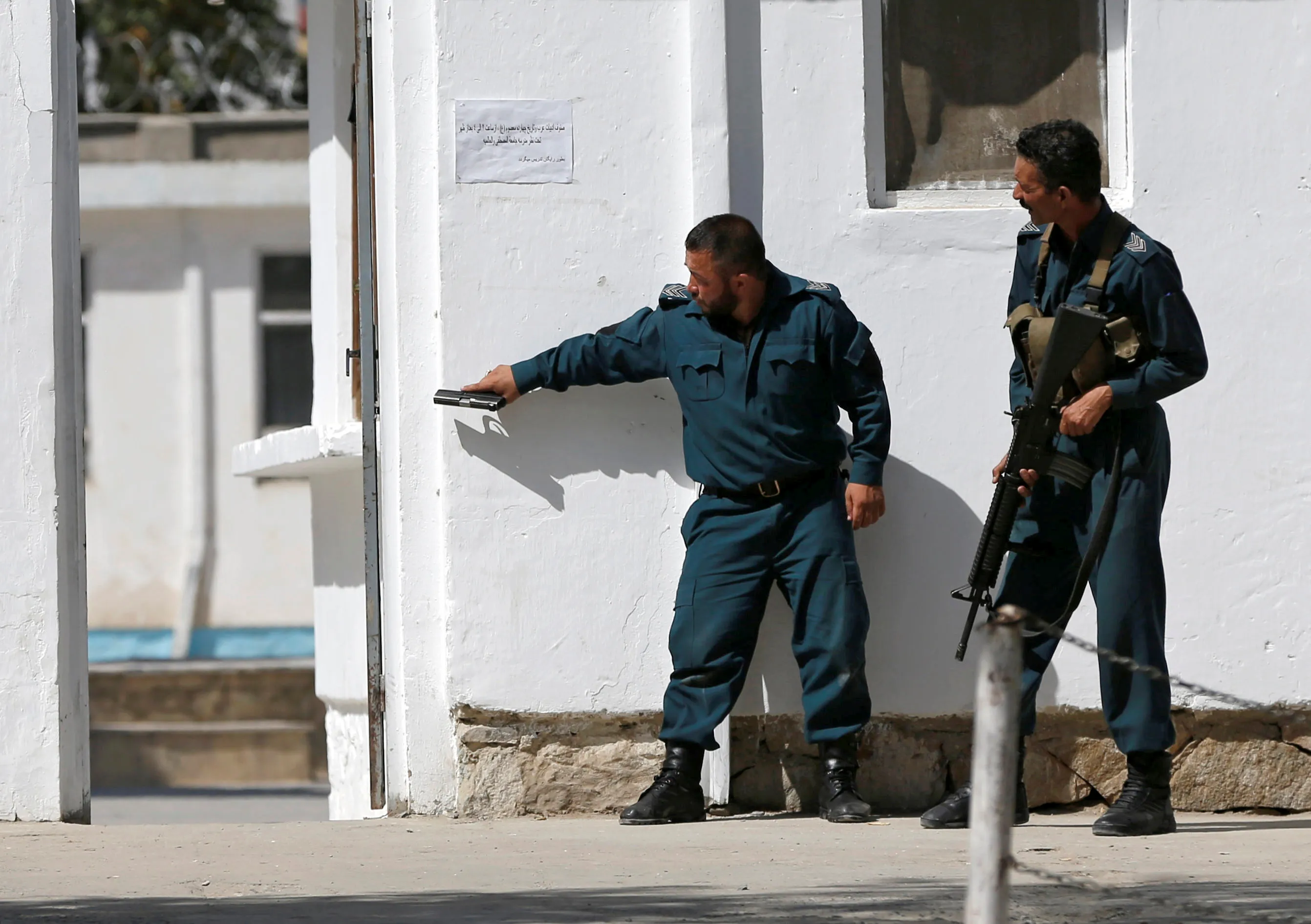 Afghan policemen take position at the site of a suicide attack followed by a clash between Afghan forces and insurgents after an attack on a Shi'ite Muslim mosque in Kabul , Afghanistanon Friday, August 25, 2017. (Photo by Omar Sobhani/Reuters)