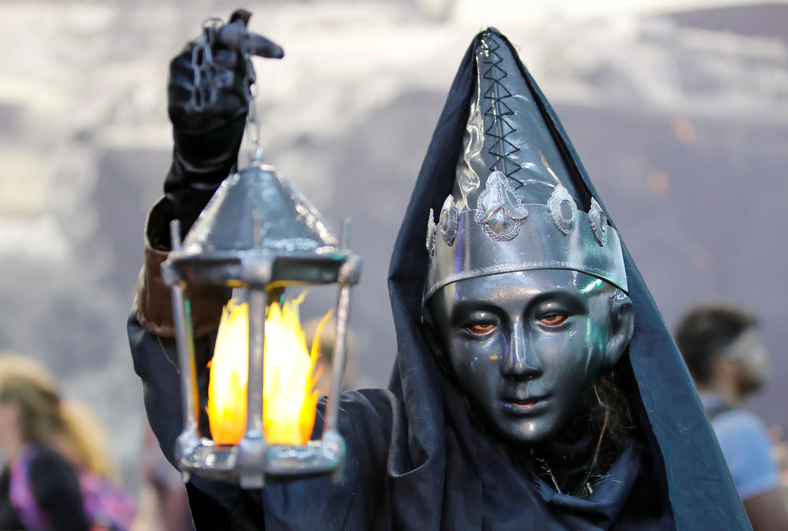 A cosplayer dressed as a jailer of the action role-playing video game Dark Souls III poses during the world's largest computer games fair, Gamescom, in Cologne, Germany August 23, 2017. Picture taken August 23, 2017. (Photo by Wolfgang Rattay/Reuters)