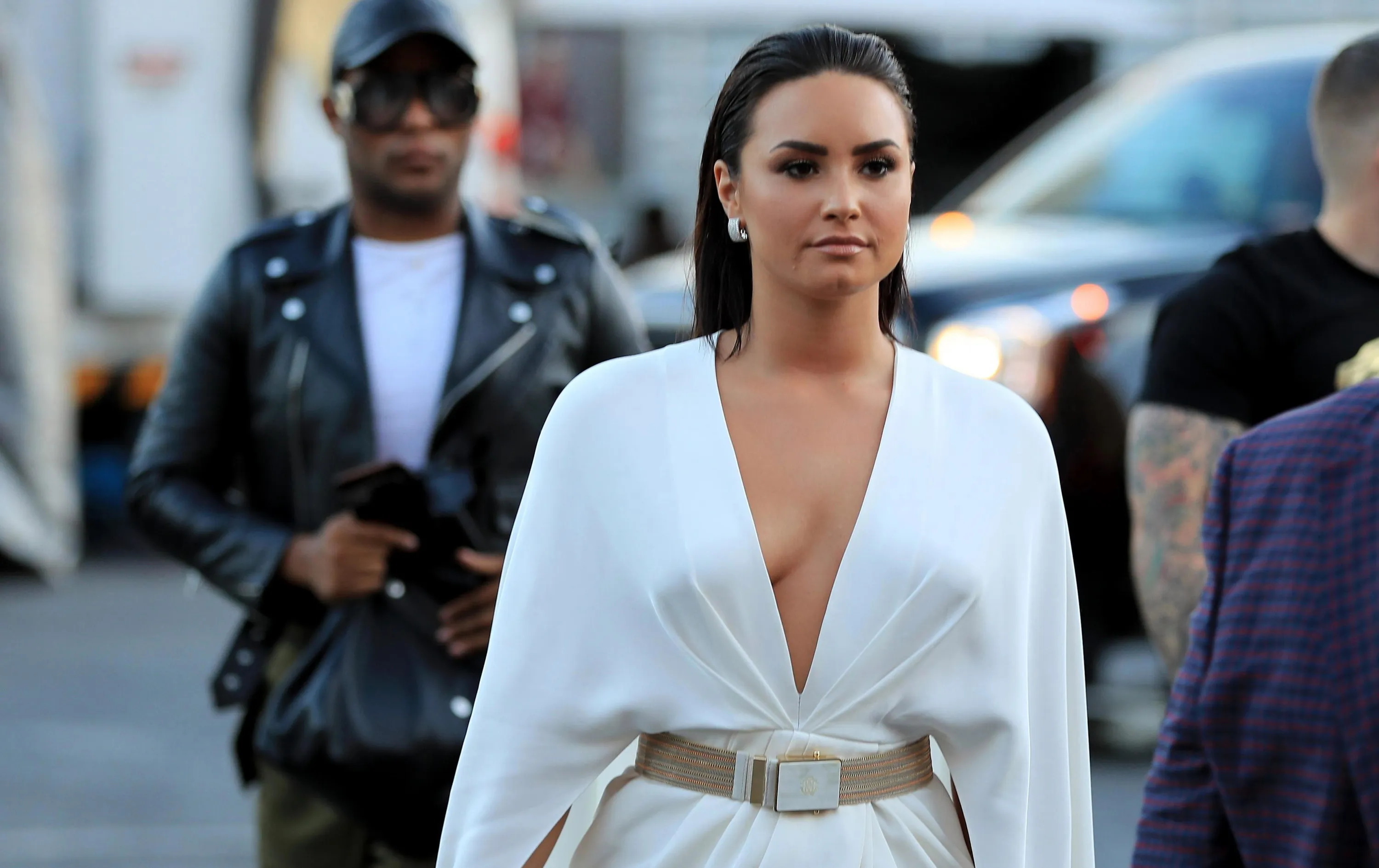 Singer Demi Lovato arrives for the super welterweight boxing match between Floyd Mayweather Jr. and Conor McGregor on August 26, 2017 at T-Mobile Arena in Las Vegas, Nevada. (Photo by Sean M. Haffey/Getty Images)