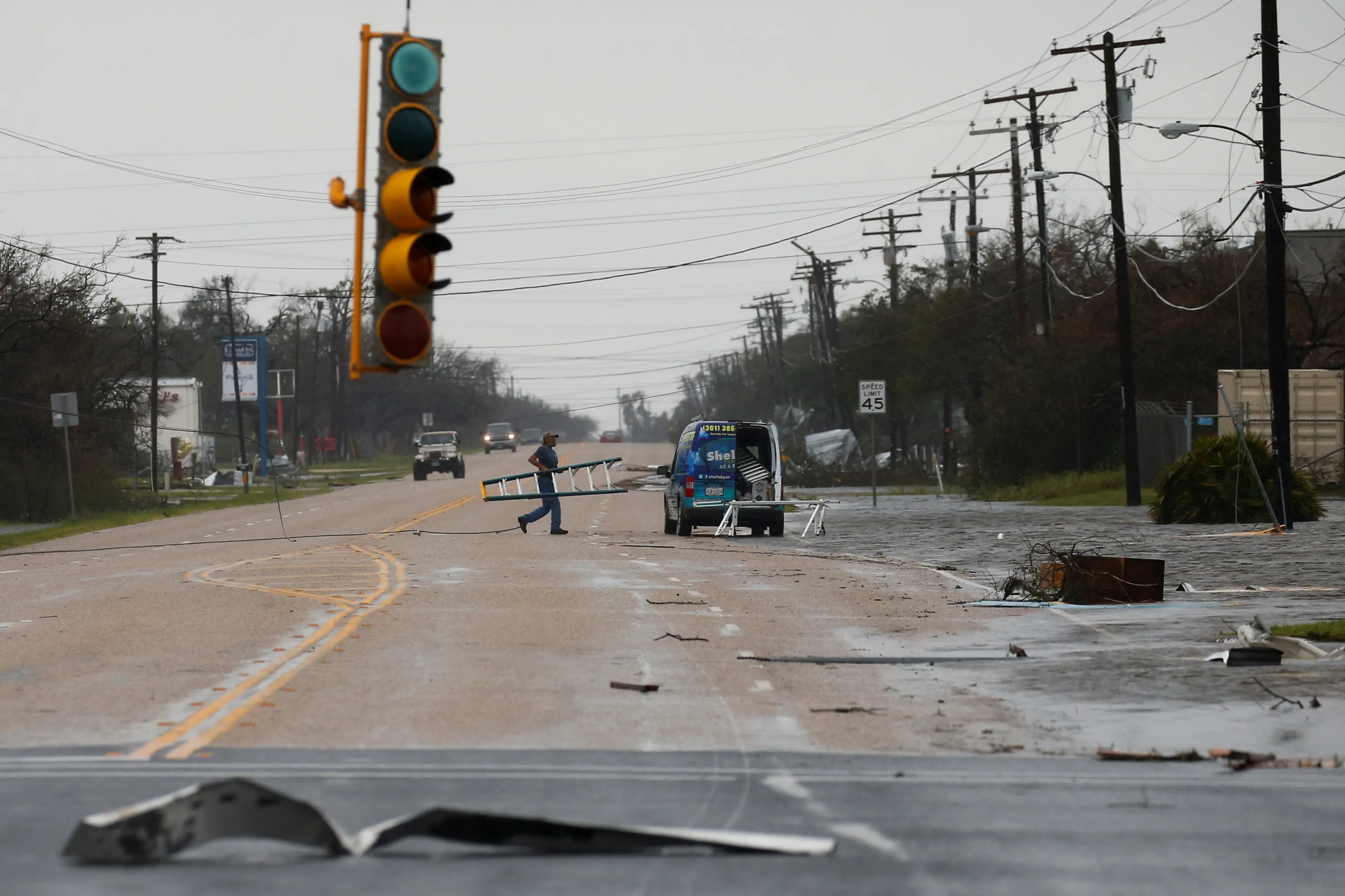 A resident picks up debris from the road the morning after in Rockport on August 26, 2017. (Photo by Adrees Latif/Reuters)