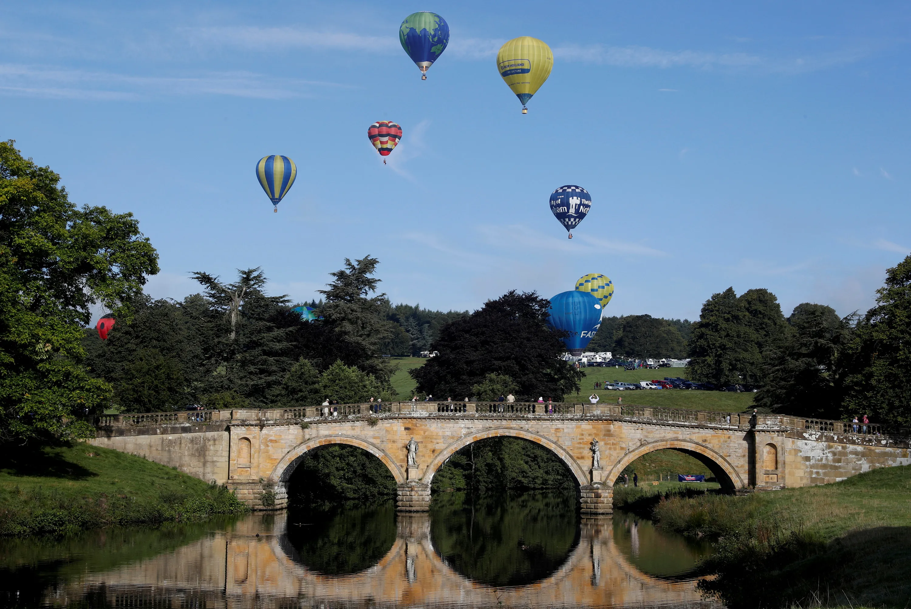 Hot air balloons take to the sky during the Chatsworth House country fair near Bakewell, Britain September 1, 2017. (Photo by Darren Staples/Reuters)