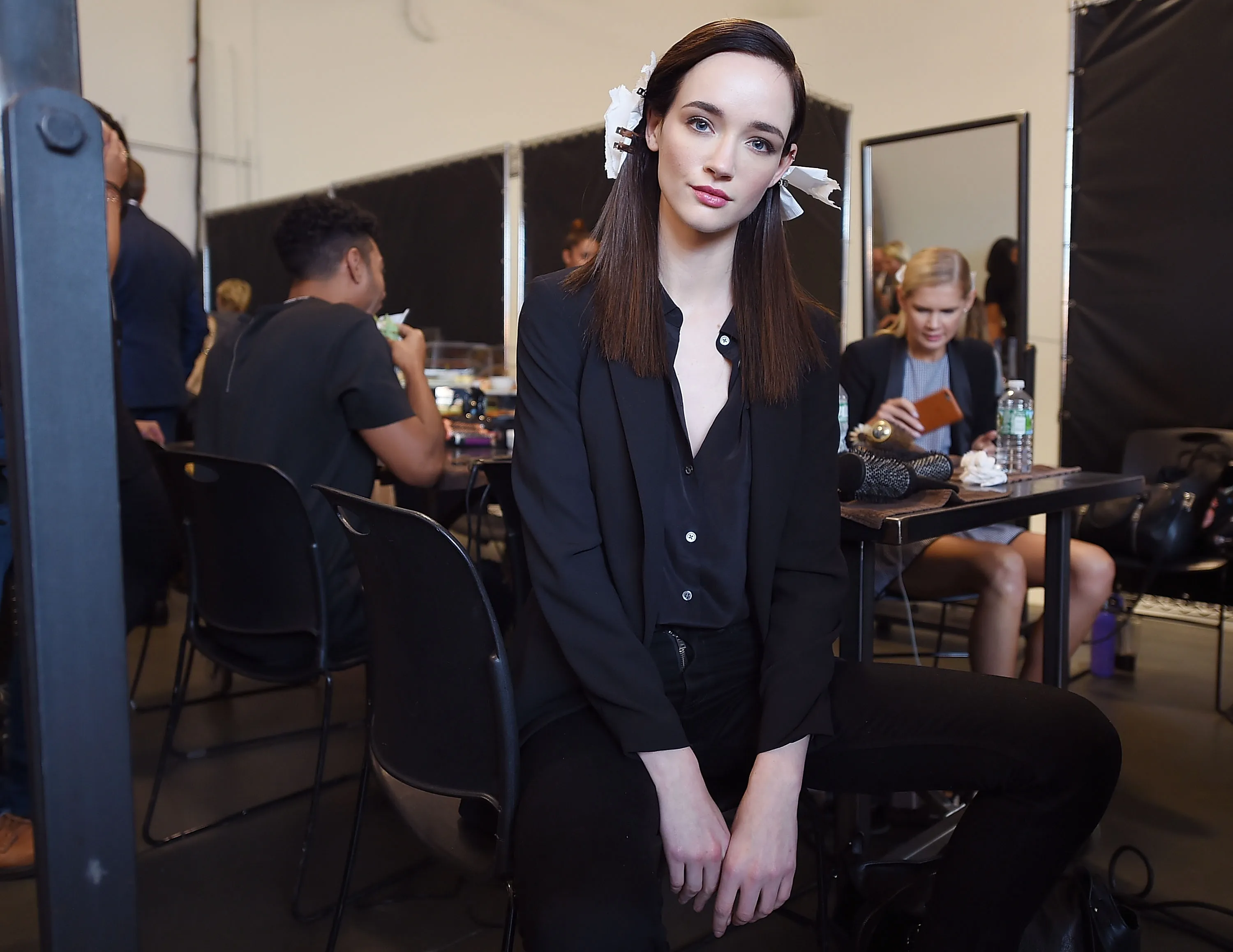 NEW YORK, NY - SEPTEMBER 06: A model preps backstage for the Pamella Roland Spring 2018 Collection Show during New York Fashion Week at Pier 59 on September 6, 2017 in New York City. (Photo by Michael Loccisano/Getty Images)