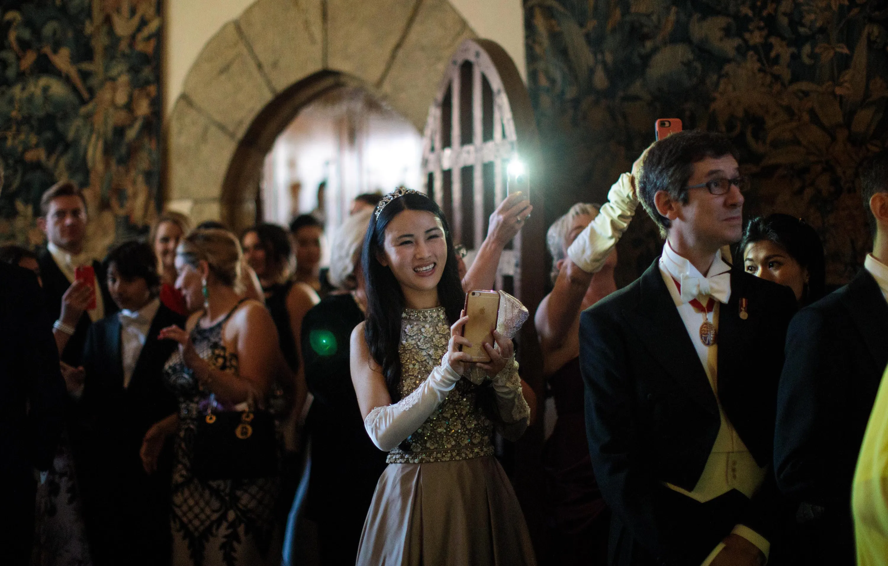 Guests take pictures and look on as debutantes arrive at Leeds Castle during the Queen Charlotte's Ball on September 9, 2017 in Maidstone, England. (Photo by Jack Taylor/Getty Images)