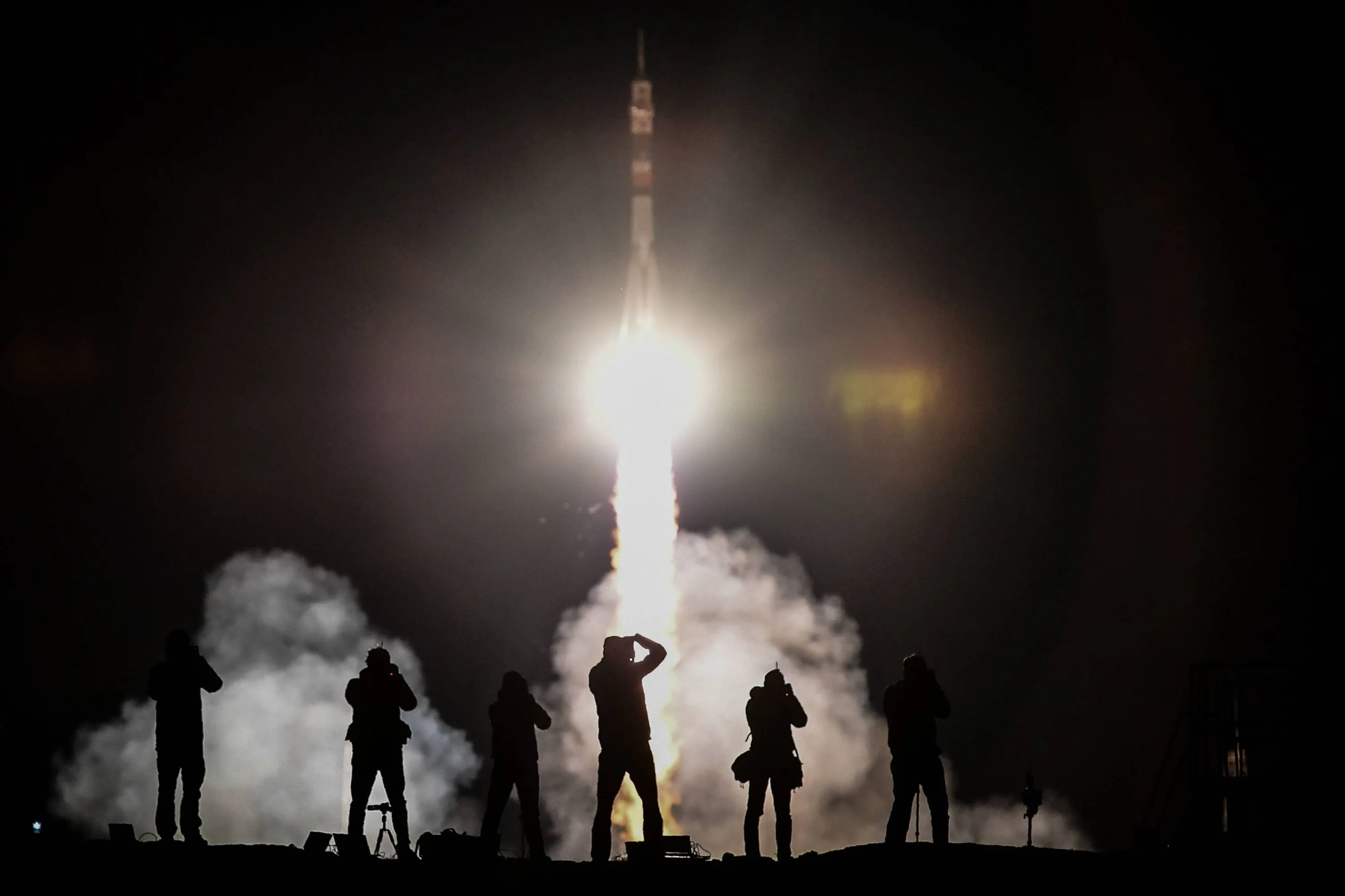 Russia's Soyuz MS-06 spacecraft carrying the members of the International Space Station (ISS) expedition 53/54, US astronauts Joseph Akaba and Mark Vande Hei and Russia's cosmonaut Alexander Misurkin, blasts off from the launch pad to the International Space Station (ISS) early on September 13, 2017. (Photo by Kirill Kudryavtsev/AFP Photo)