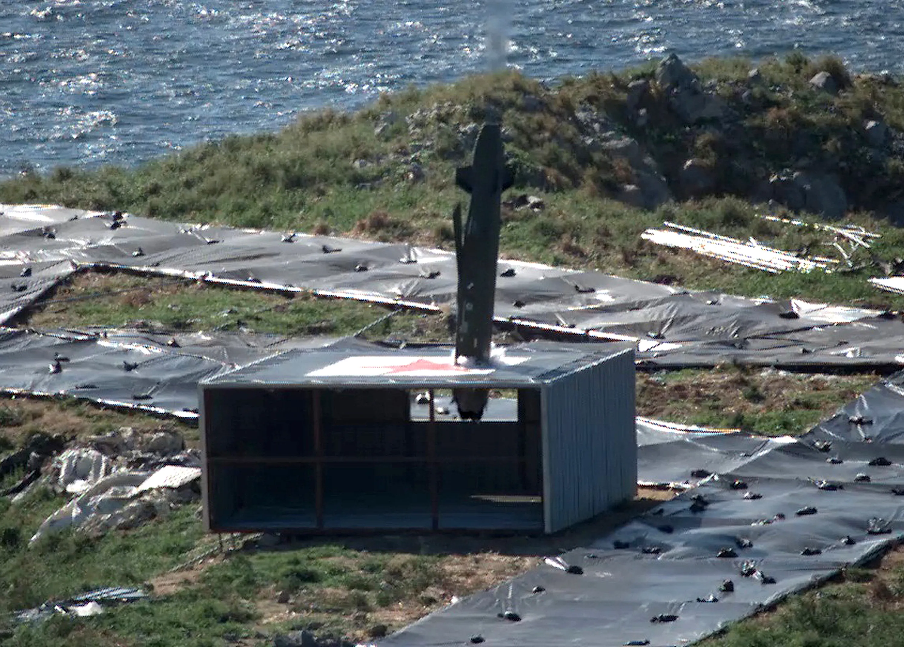In this photo provided by South Korea Defense Ministry, a Taurus missile fired from a South Korean air force F-15K fighter jet hits a target during a drill, off the country's western coast, South Korea, Wednesday, September 13, 2017. South Korea says it conducted its first live-fire drill for an advanced air-launched cruise missile it says will strengthen its pre-emptive strike capability against North Korea in the event of crisis. (Photo by South Korea Defense Ministry via AP Photo)