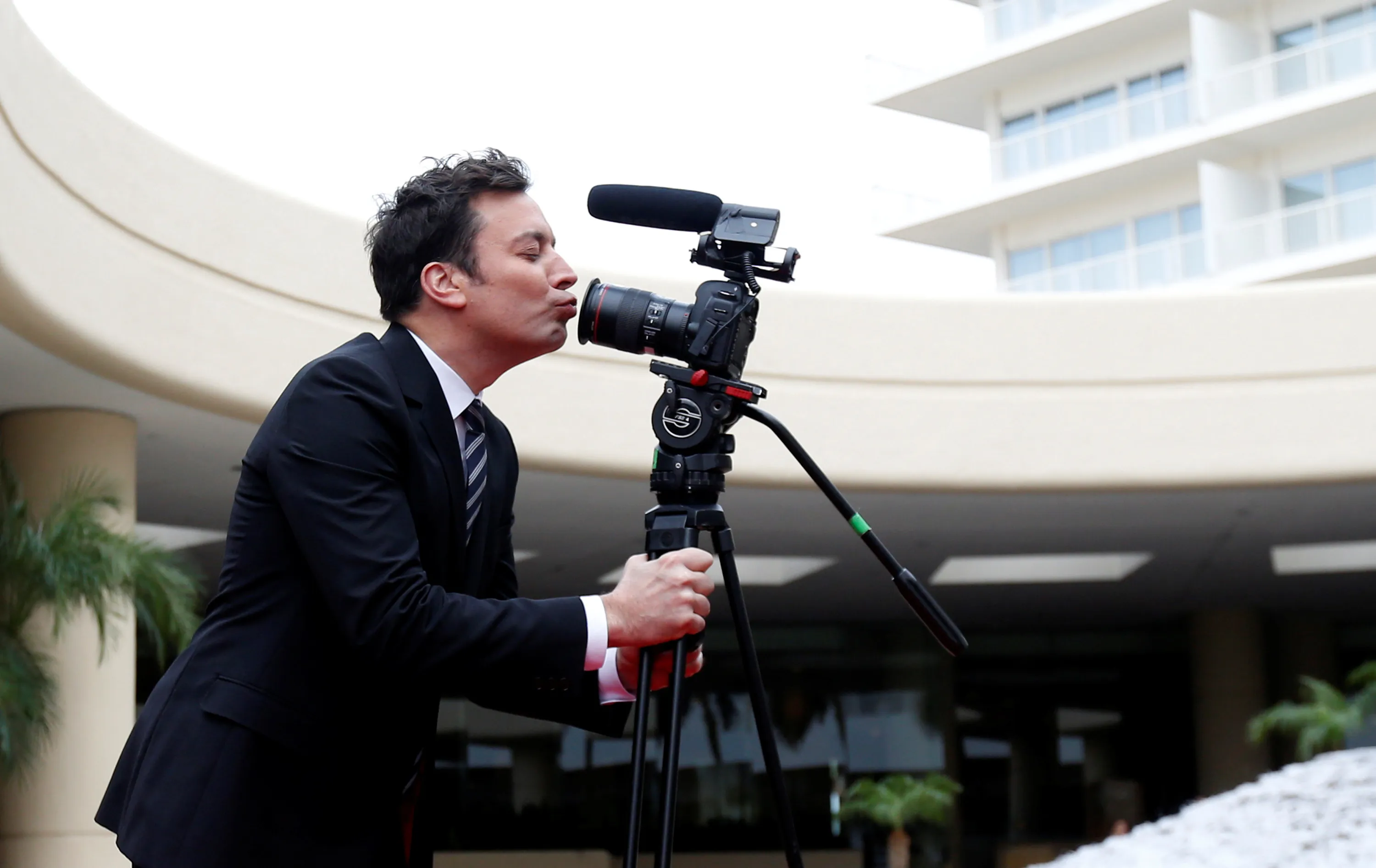 Host and comedian Jimmy Fallon kisses a camera during a red carpet rollout during preparations for the 73rd Annual Golden Globe Awards in Beverly Hills, California, U.S. January 4, 2017. (Photo by Mario Anzuoni/Reuters)