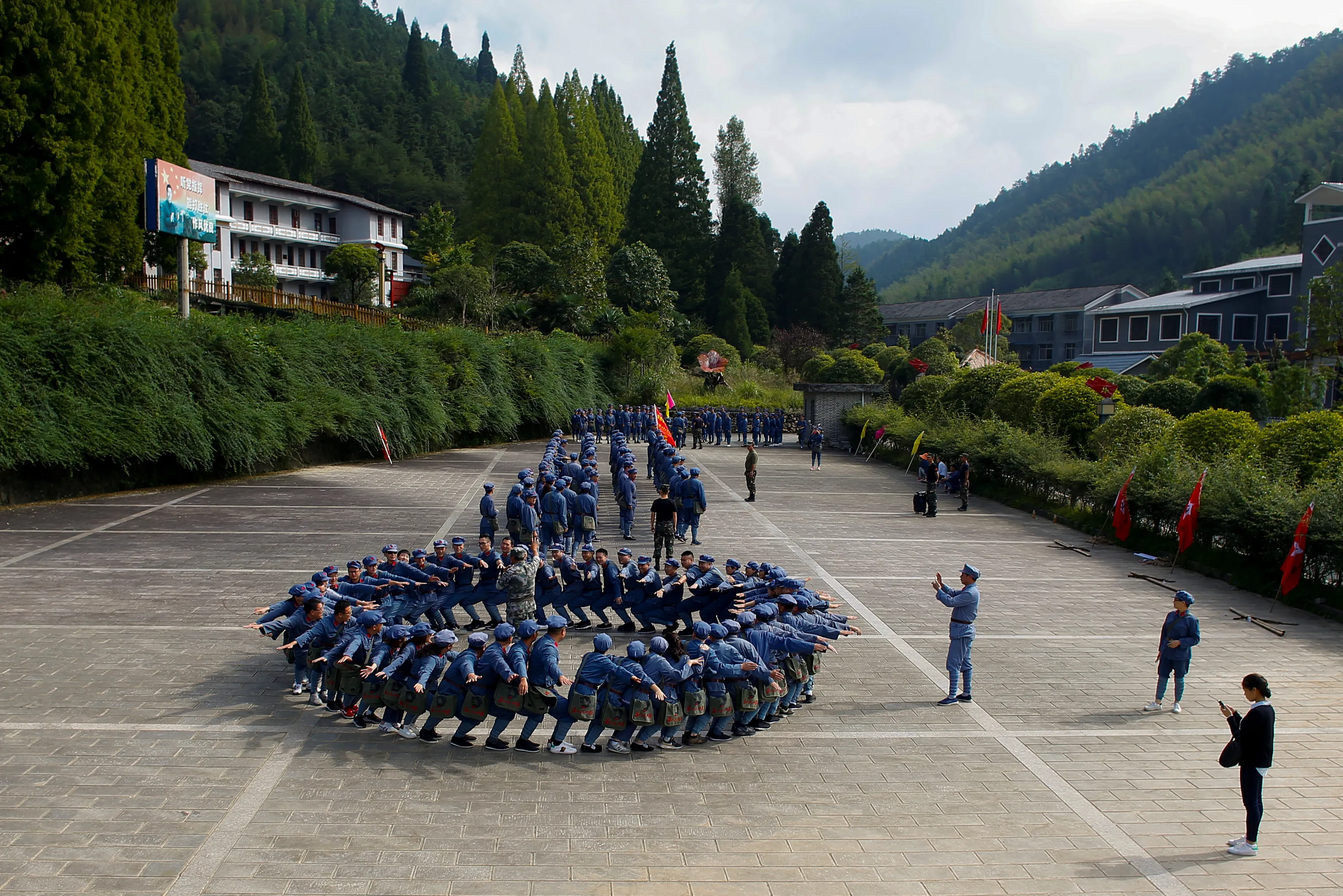 Participants dressed in replica red army uniforms take part in a Communist team-building course extolling the spirit of the Long March, organised by the Revolutionary Tradition College, in the mountains outside Jinggangshan, Jiangxi province, China, September 14, 2017. (Photo by Thomas Peter/Reuters)