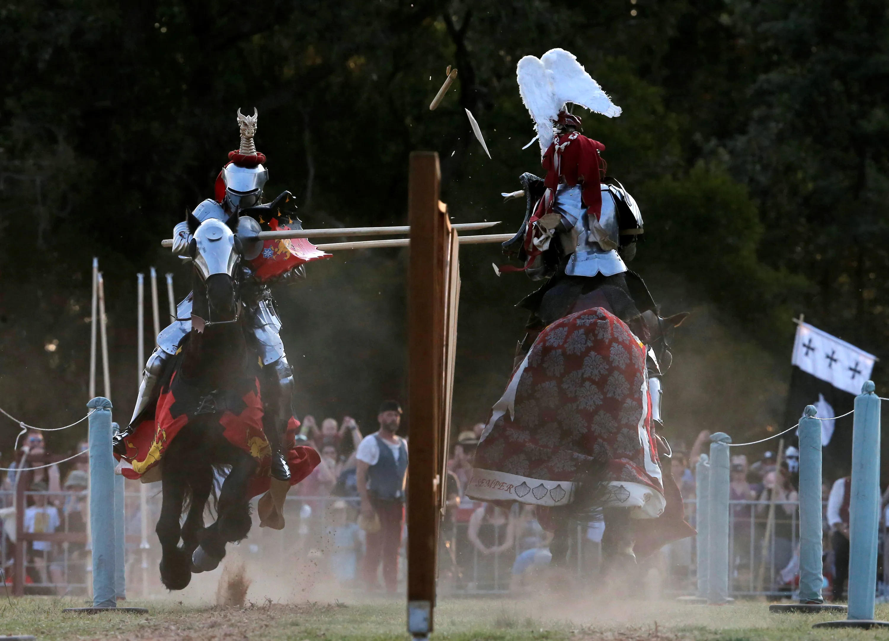 Australian jouster Phillip Leitch (L) competes against Frenchman Michael Sadde on the way to Leitch winning the inaugural World Jousting Championship at the St Ives Medieval Faire in Sydney, Australia, September 24, 2017. (Photo by Jason Reed/Reuters)
