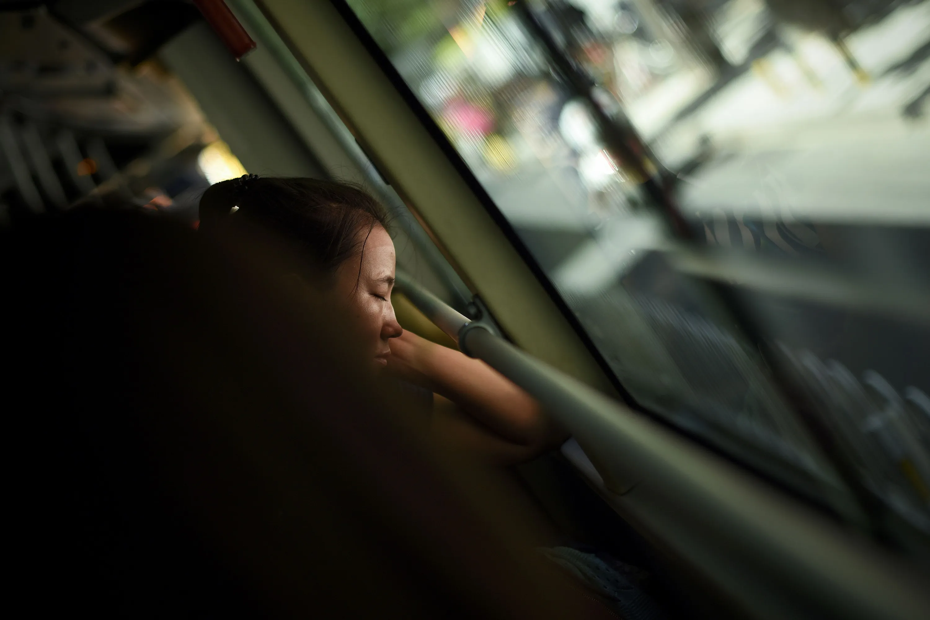 A woman sleeps on a bus in Beijing, China on September 18, 2017. (Photo by Wang Zhao/AFP Photo)