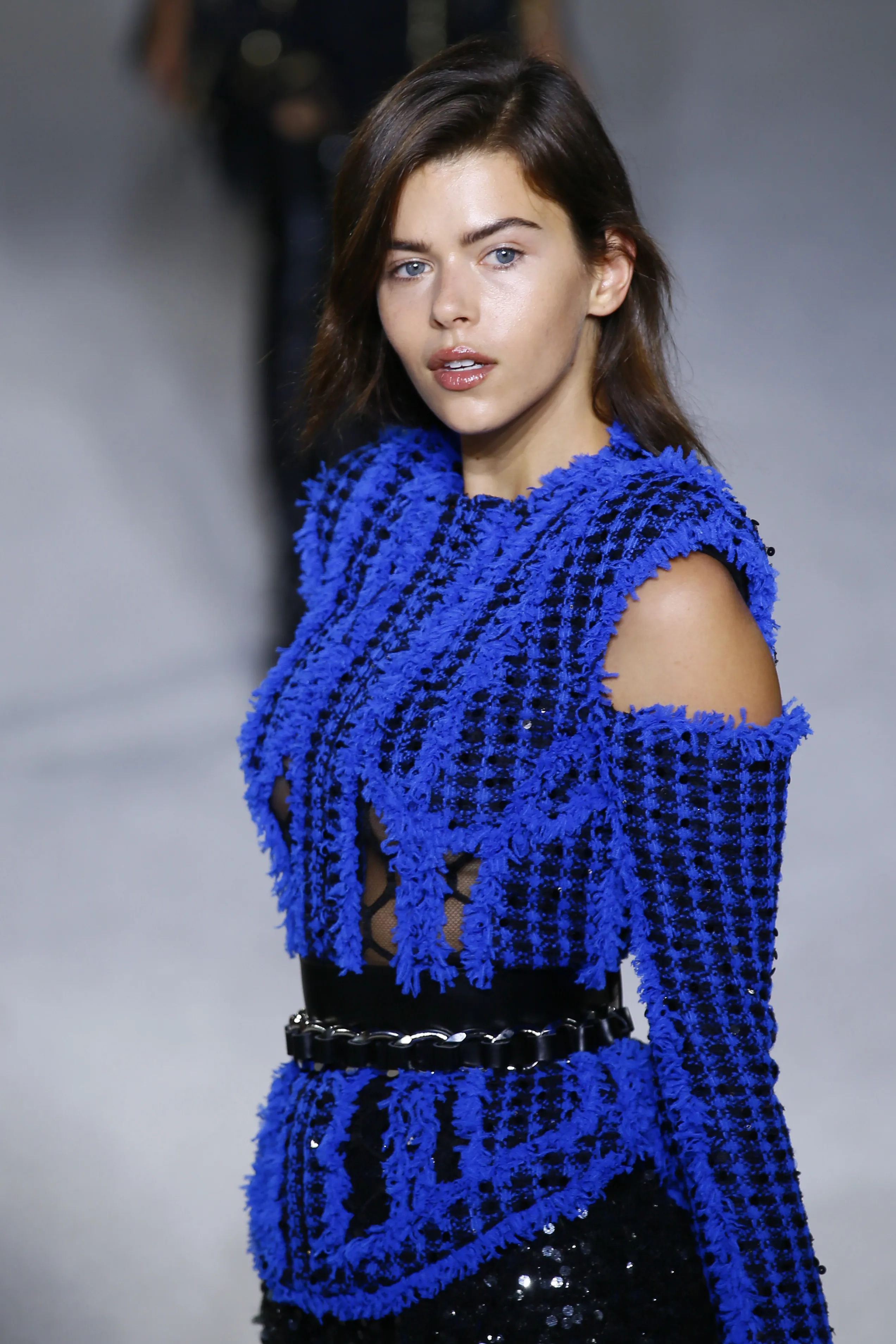 A model wears a creation for Balmain Spring/Summer 2018 ready-to-wear fashion collection presented in Paris, Thursday, September 28, 2017. (Photo by Francois Mori/AP Photo)