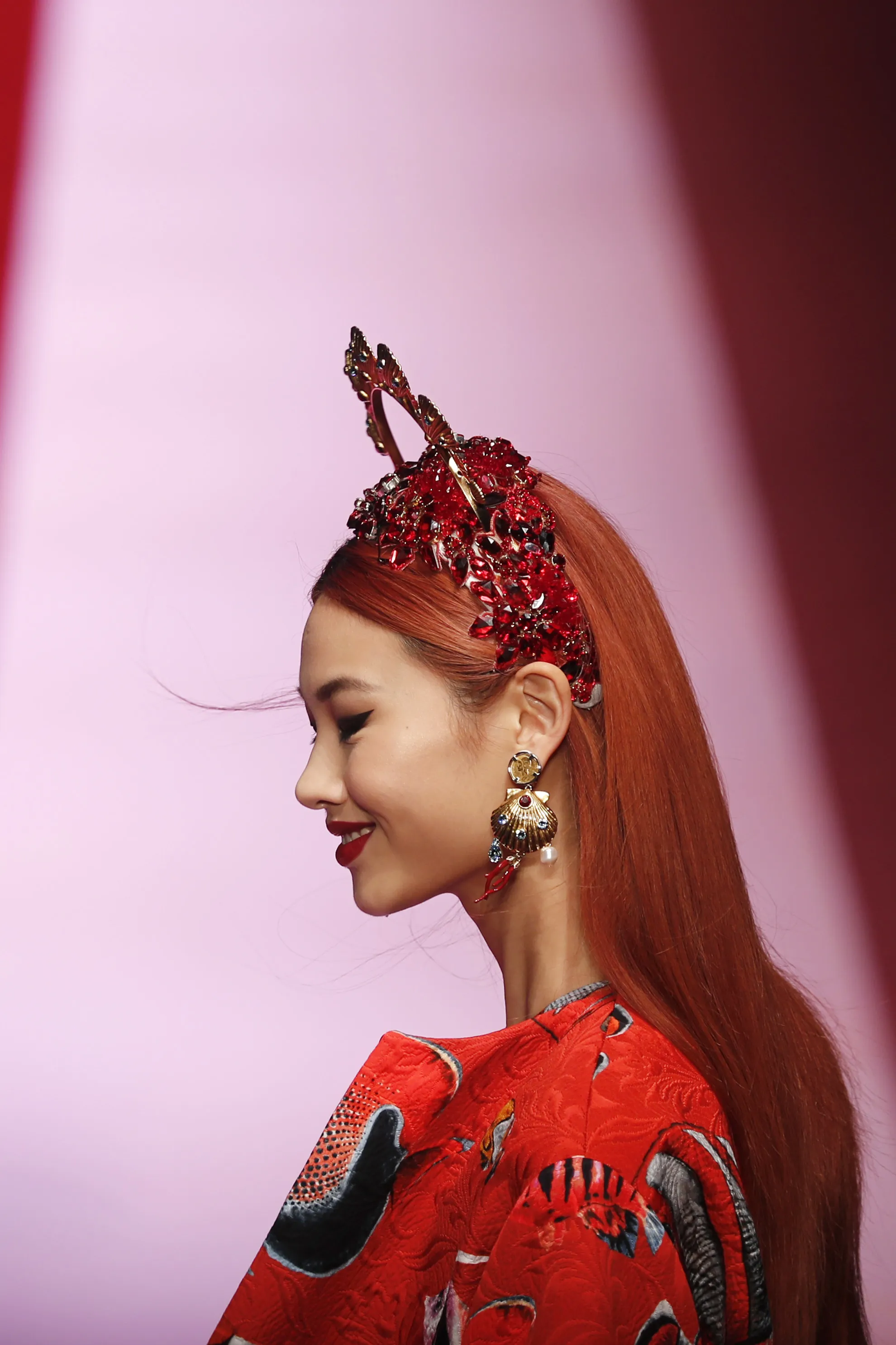A model wears a creation as part of the Dolce & Gabbana womens Spring/Summer 2018/19 fashion collection, presented in Milan, Italy, Sunday, September 24, 2017. (Photo by Antonio Calanni/AP Photo)