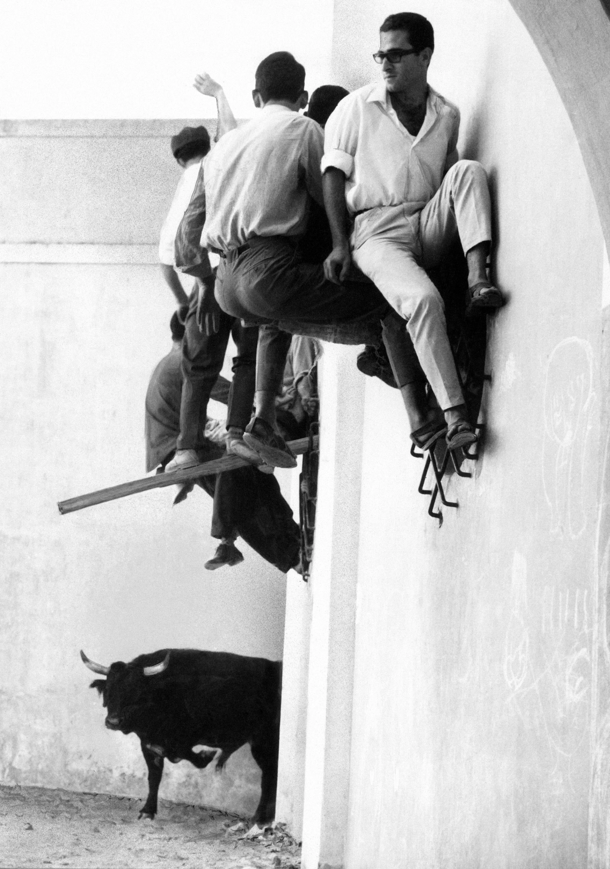 What with a bull running around loose below can you blame these men for climbing up a wall? The bull was one of many turned loose during a “Largada”, something like the running of the bulls in the Spanish city of Pamplona, Spain, September 23, 1965. These bulls were running through the streets of Morita do Ribatejo in Portugal. Just goes to show that when it comes right down to facing an angry bull there are few as brave as the matador. (Photo by AP Photo)