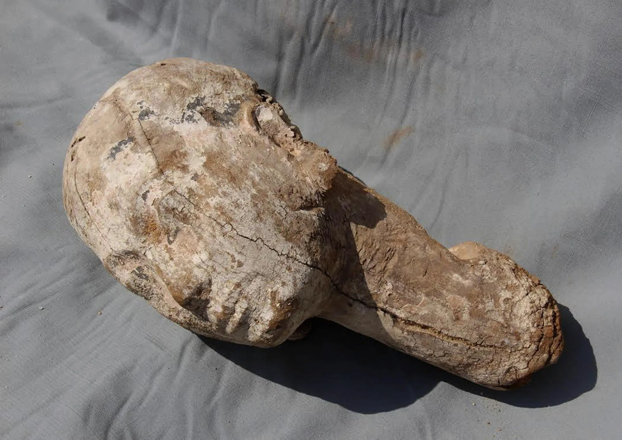 This undated photo released by the Egyptian Ministry of Antiquities shows a wooden head believed to depict Ankhesenpepi II, the mother of King Pepi II of the 6th dynasty who ascended to the throne at the age of six, that was was found in the district of Saqqara, near the ancient Pyramids of Giza during excavation work. In a statement Wednesday, October 18, 2017, by the Antiquities Ministry said the artifact is in poor condition and will have to undergo restoration. (Photo by Egyptian Ministry of Antiquities via AP Photo)
