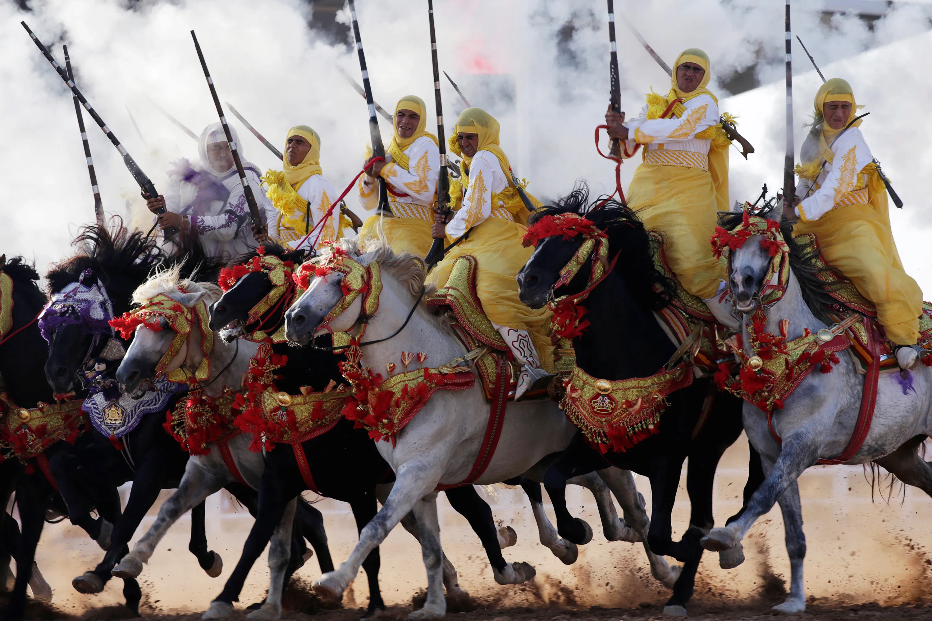 Horse riders perform with guns during the El-Jadida International Horse Show in El-Jadida, south of Casablanca October 21, 2017. (Photo by Youssef Boudlal/Reuters)
