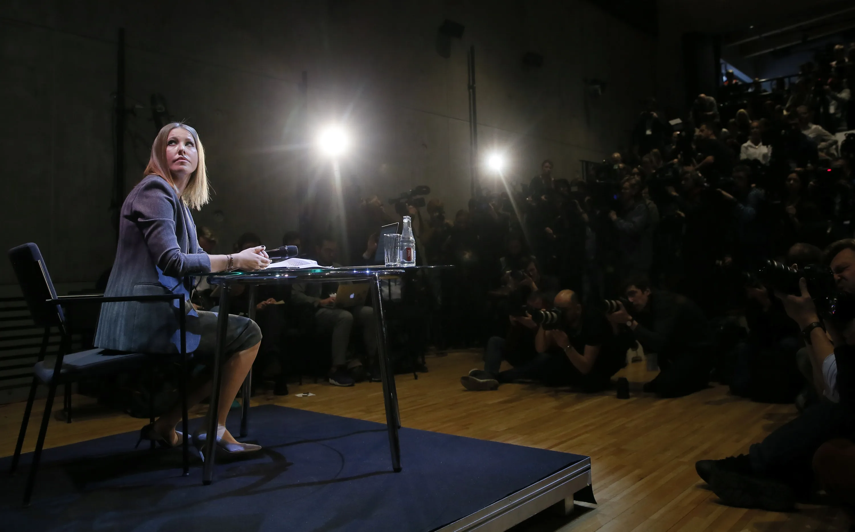 Russian TV personality Ksenia Sobchak, who recently announced plans to run in the upcoming presidential election, attends a news conference in Moscow, Russia October 24, 2017. (Photo by Maxim Shemetov/Reuters)
