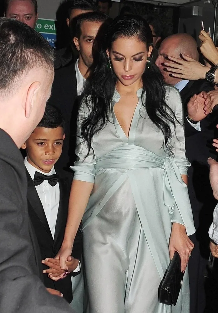 Georgina Rodríguez and Cristiano Ronaldo Jr arrives on the green carpet for The Best FIFA Football Awards at The London Palladium on October 23, 2017 in London, England. (Photo by BackGrid)