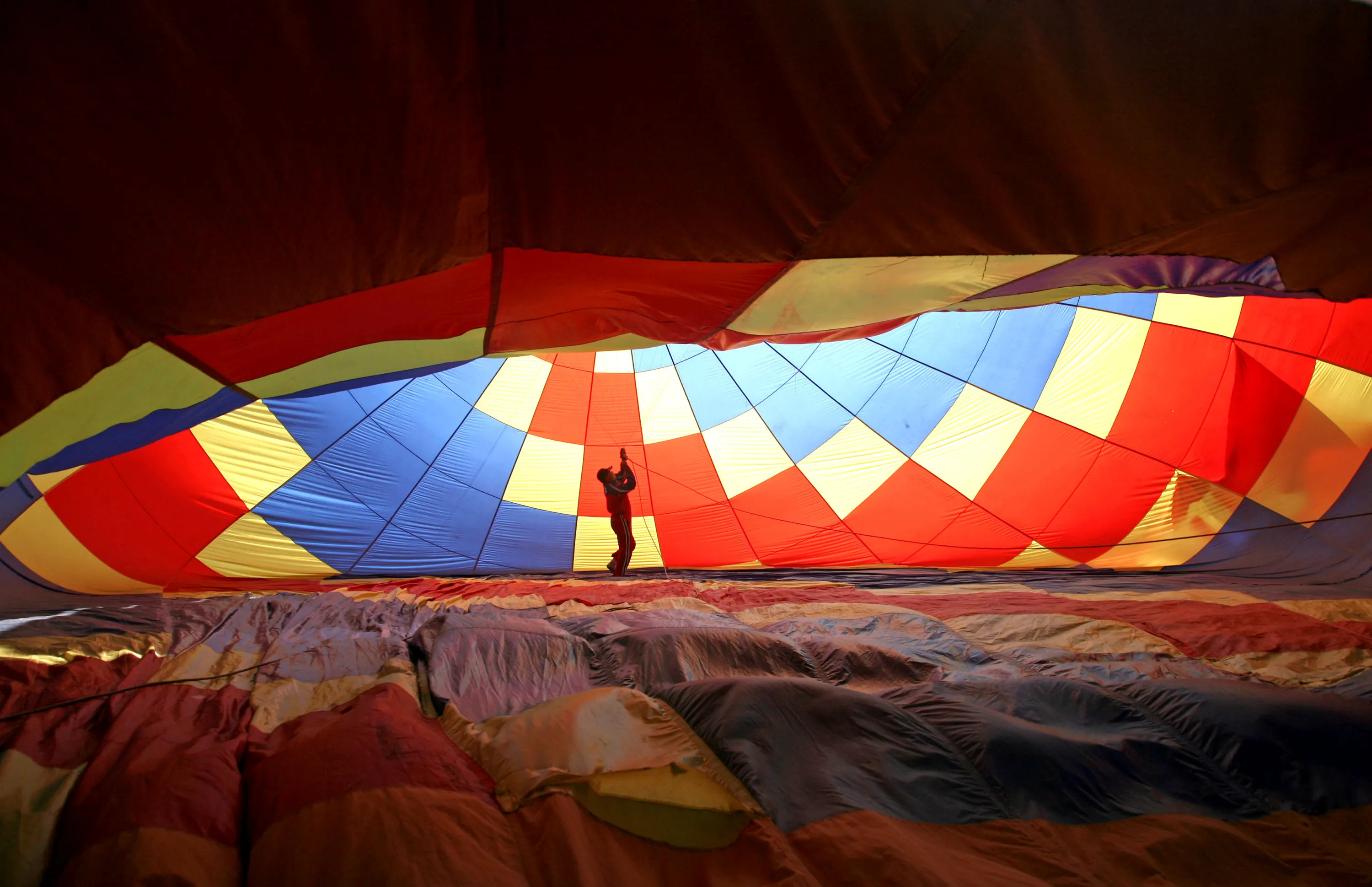 A man prepares a hot air balloon during the 2nd Hot Air Balloon Carnival in Nanjing, Jiangsu province, China October 28, 2017. (Photo by Reuters/China Stringer Network)