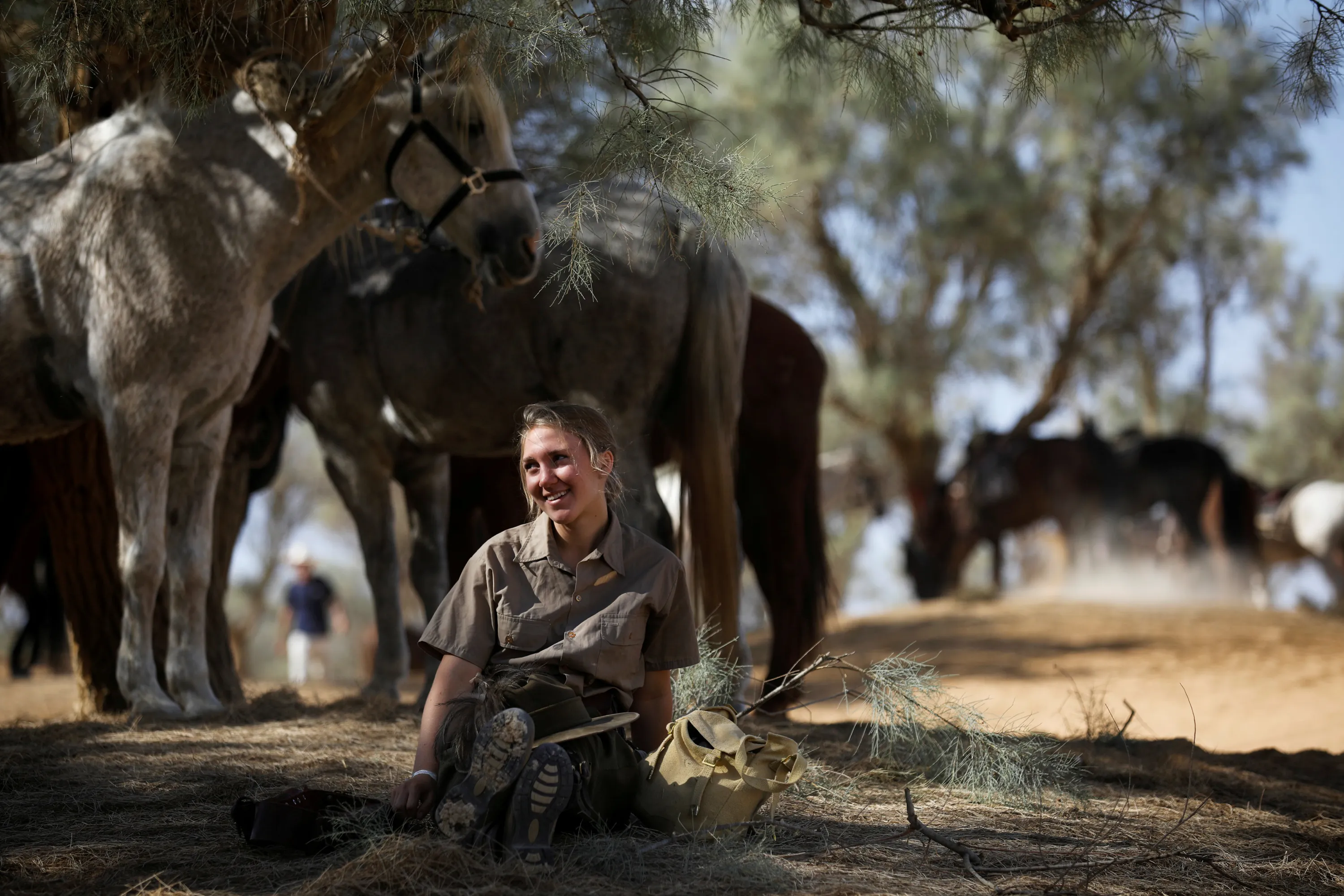 A woman sits near horses as she takes part in an event marking centenary celebrations of “The Battle of Beersheba”, together with some 100 descendants of soldiers from the Australian and New Zealand Army Corps (ANZAC), who rode along the trail that their ancestors took as troops when they made their way to Beersheba conquering Turkish forces in a famous World War One cavalry charge in 1917, in the Negev Desert, southern Israel October 29, 2017. (Photo by Amir Cohen/Reuters)