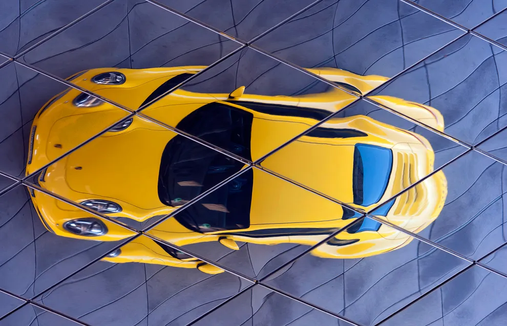 A Porsche 911 is reflected in the wall of the company's museum in Stuttgart, Germany on Jan. 24. Volkswagen AG said the carmaker is "still in the process" of deciding on a plan to combine with Porsche SE's automotive business. (Guenter Schiffmann/Bloomberg News)