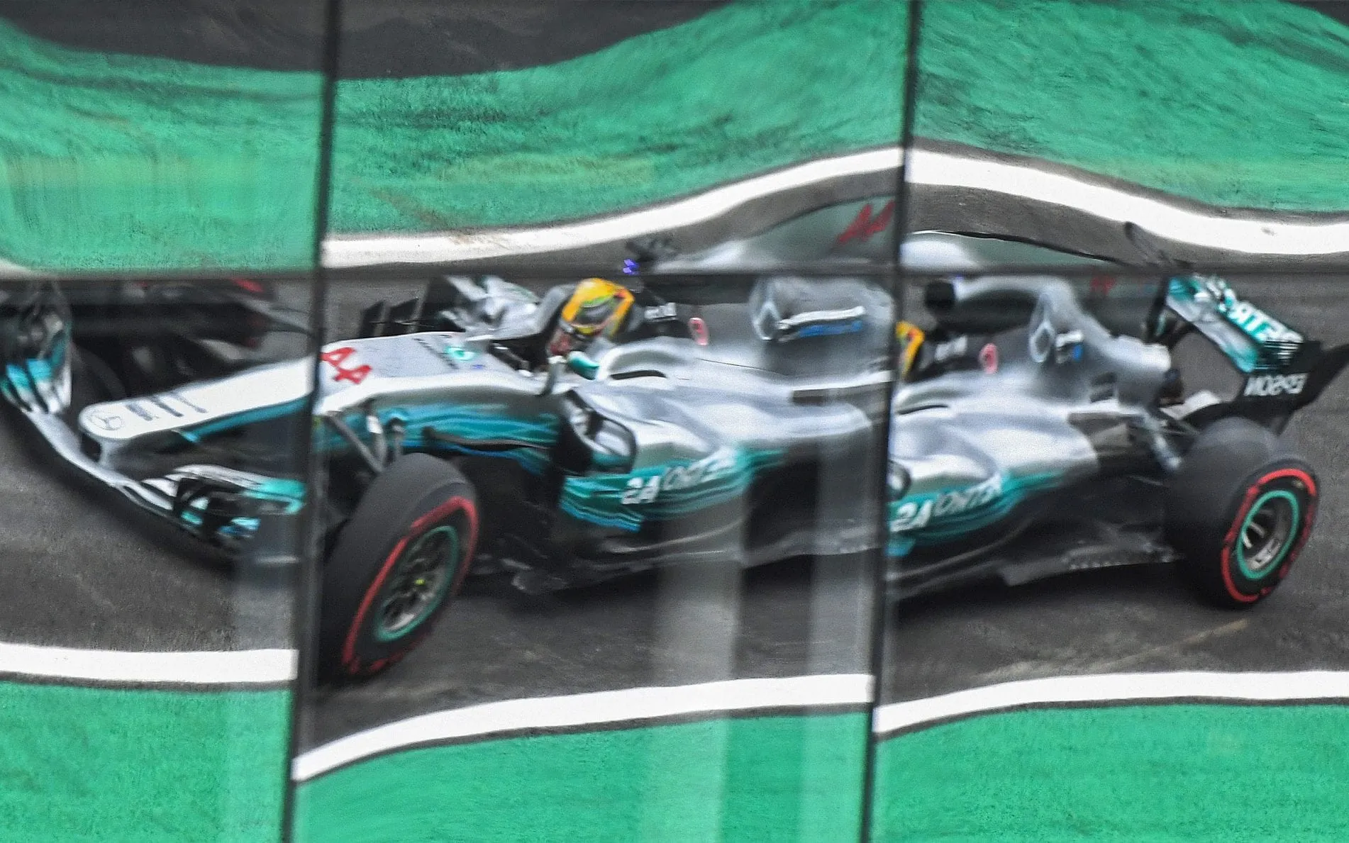 Mercedes' British driver Lewis Hamilton is reflected on windows as he powers his car during the Brazilian Formula One Grand Prix third practice session at the Interlagos circuit in Sao Paulo, Brazil, on November 11, 2017. Hamilton said members of his Mercedes team had guns held to their heads as they were robbed as they left the Interlagos circuit on Friday. “Some of my team were held up at gun point last night leaving the circuit here in Brazil. Gun shots fired, gun held at ones head. This is so upsetting to hear”, world champion Hamilton tweeted. (Photo by Nelson Almeida/AFP Photo)