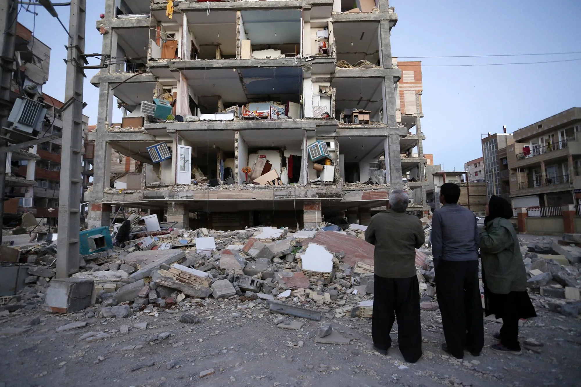 In this photo provided by the Iranian Students News Agency, ISNA, people look at destroyed buildings after an earthquake at the city of Sarpol-e-Zahab in western Iran, Monday, November 13, 2017. (Photo by Pouria Pakizeh/ISNA via AP Photo)