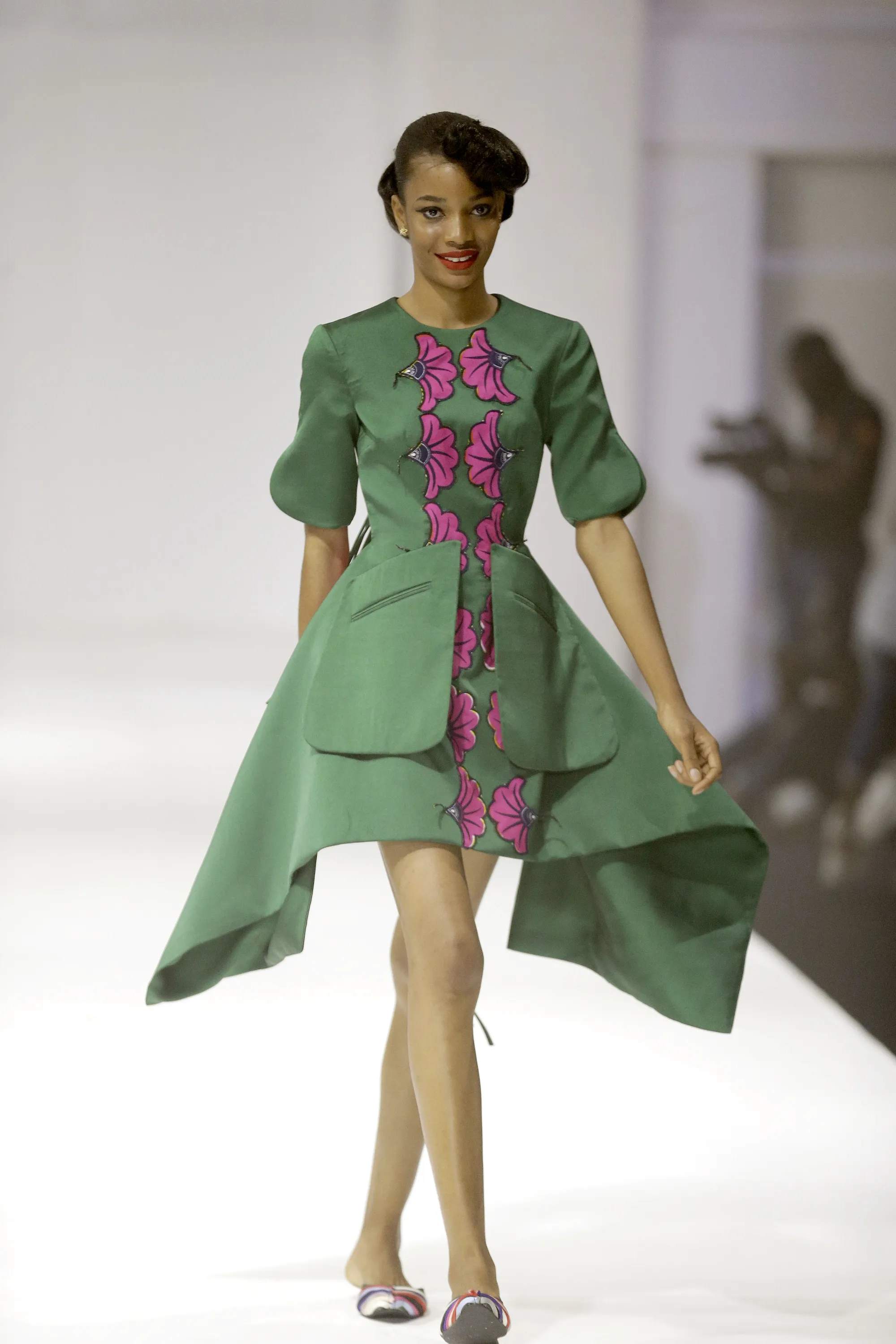 A model displays creation by Ituen Basi during the Fashion Week in Lagos, Nigeria, Saturday, November 11, 2017. (Photo by Sunday Alamba/AP Photo)