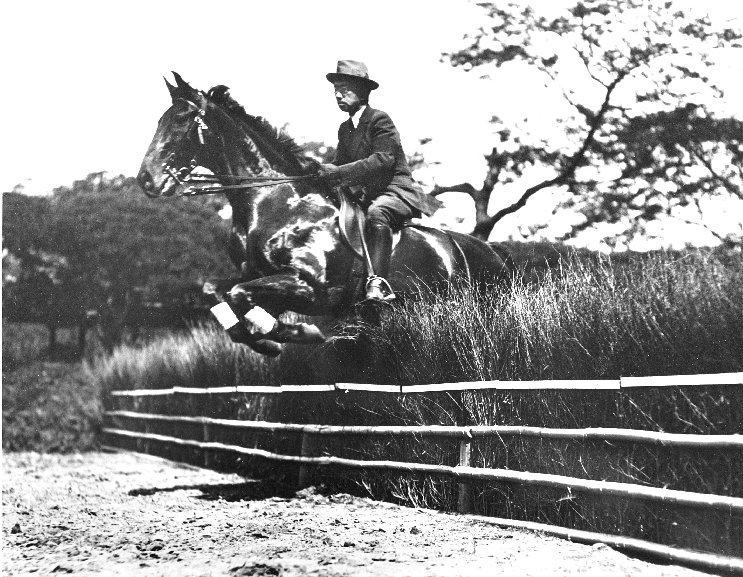 Emperor Hirohito, 26, is shown in steeplechase on his horse during his equestrian practice in Tokyo, Japan on June 10, 1927. (Photo by AP Photo)