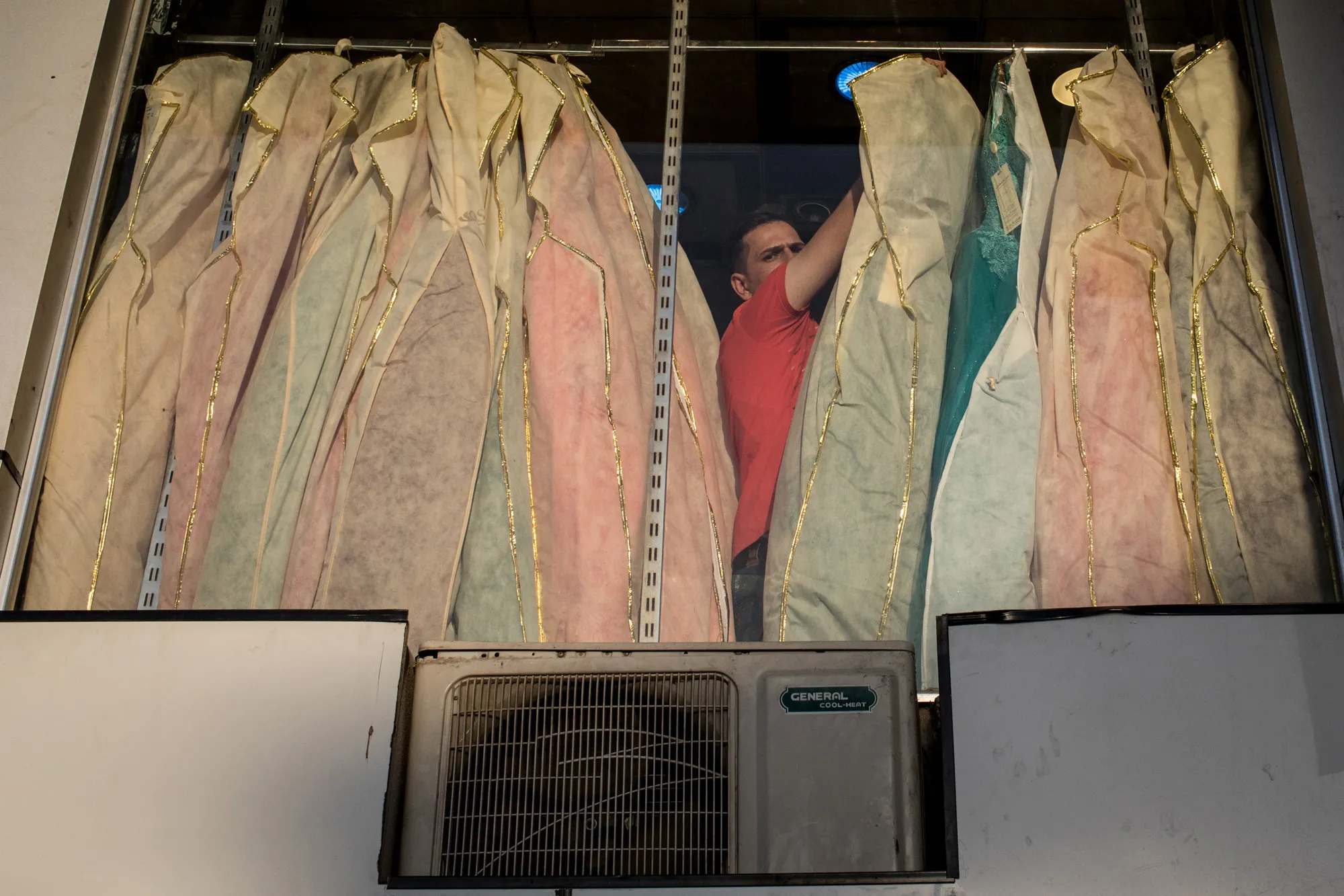 A man stocks women's clothing at a shop in East Mosul on November 5, 2017 in Mosul, Iraq. (Photo by Chris McGrath/Getty Images)