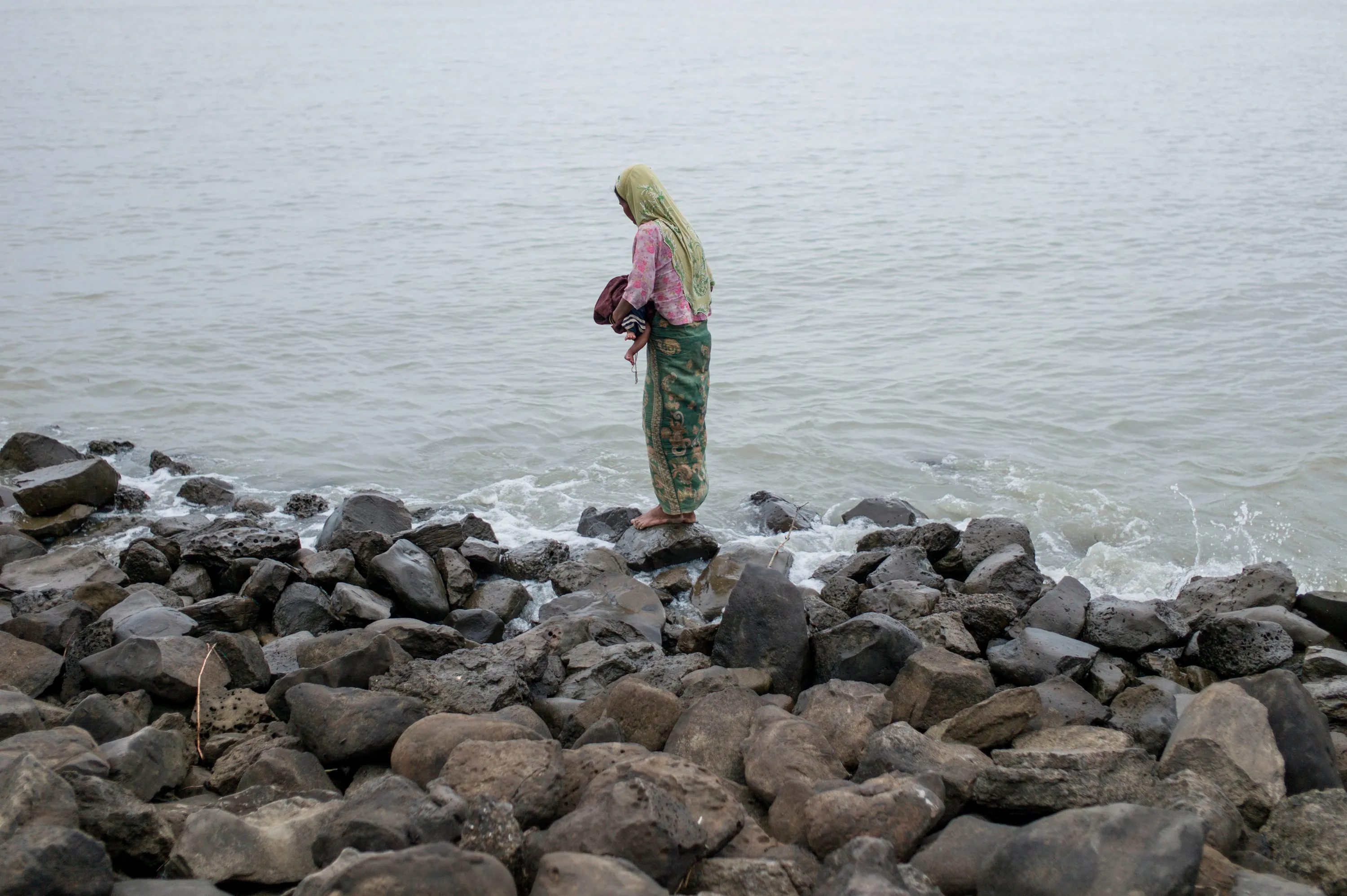 A young Rohingya Muslim refugee cleans her baby with water after crossing the border from Myanmar, on the Bangladeshi shores of the Naf river in Teknaf, on October 5, 2017. More than half a million Rohingya have fled ethnic bloodshed in Rakhine since late August, many by boat across the Naf River which divides Myanmar and Bangladesh. (Photo by Fred Dufour/AFP Photo)