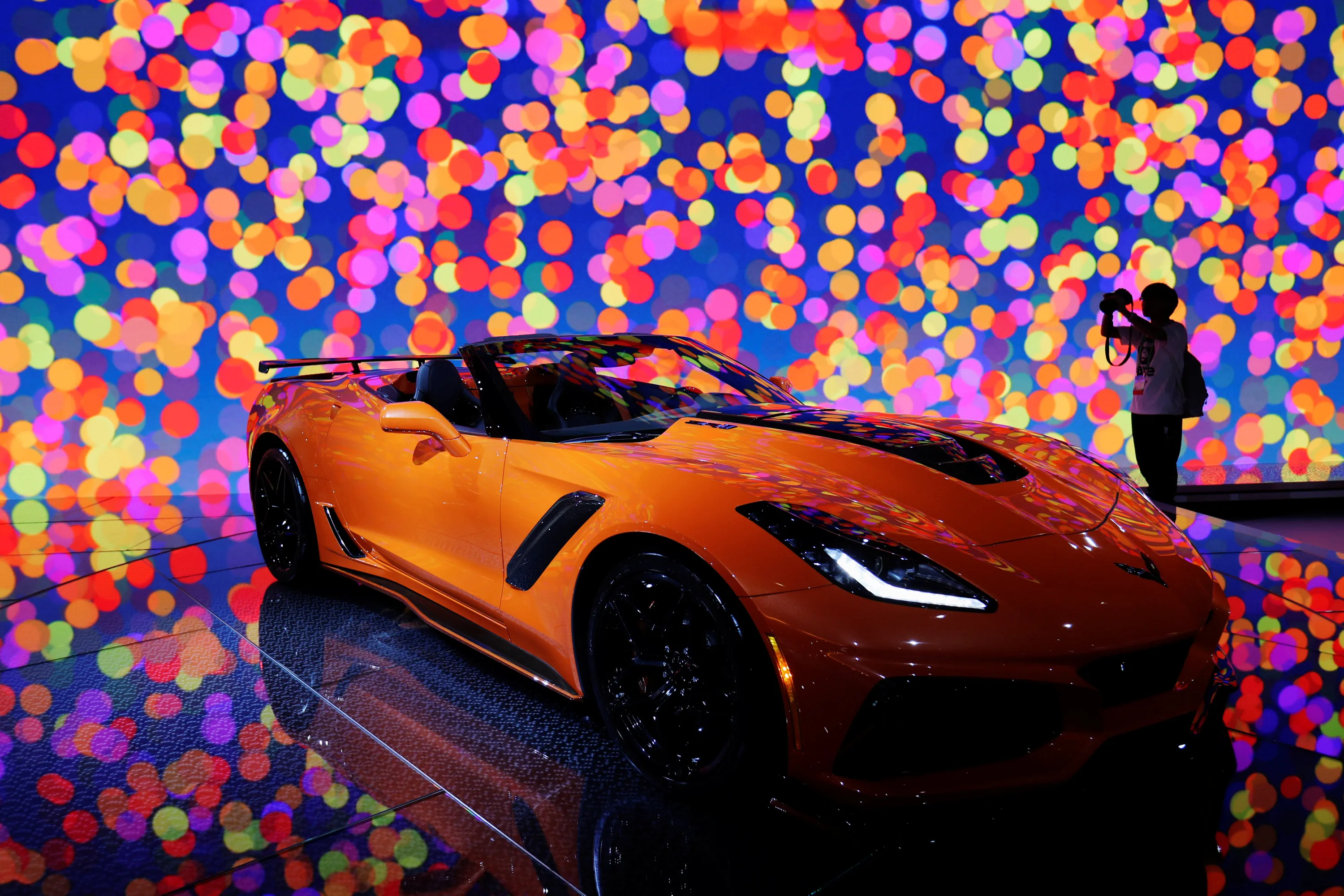 An attendee takes a picture for the new 2019 Chevrolet Corvette ZR1 at the Los Angeles Auto Show in Los Angeles, California, U.S., November 30, 2017. (Photo by Mike Blake/Reuters)