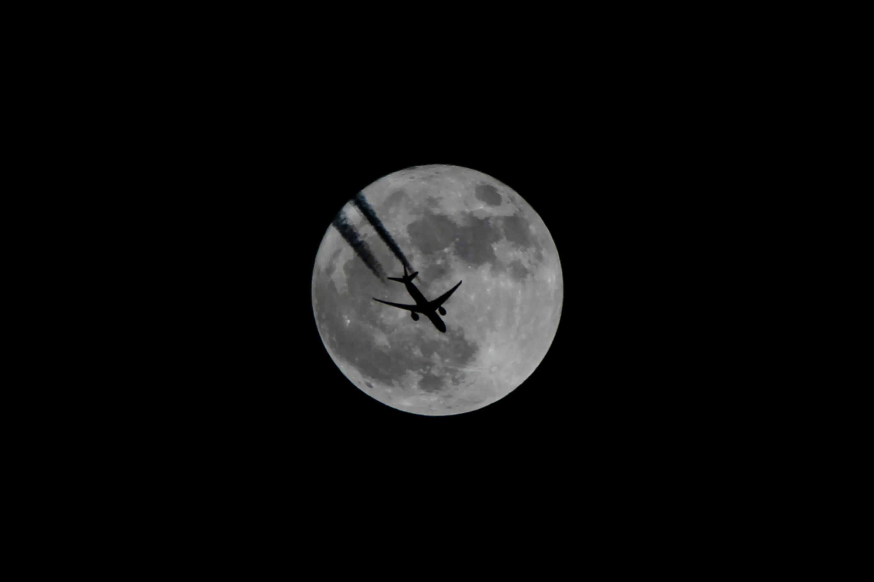 An aircraft flies in front of a full moon in Van, Turkey on December 03, 2017. (Photo by Ozkan Bilgin/Anadolu Agency/Getty Images)