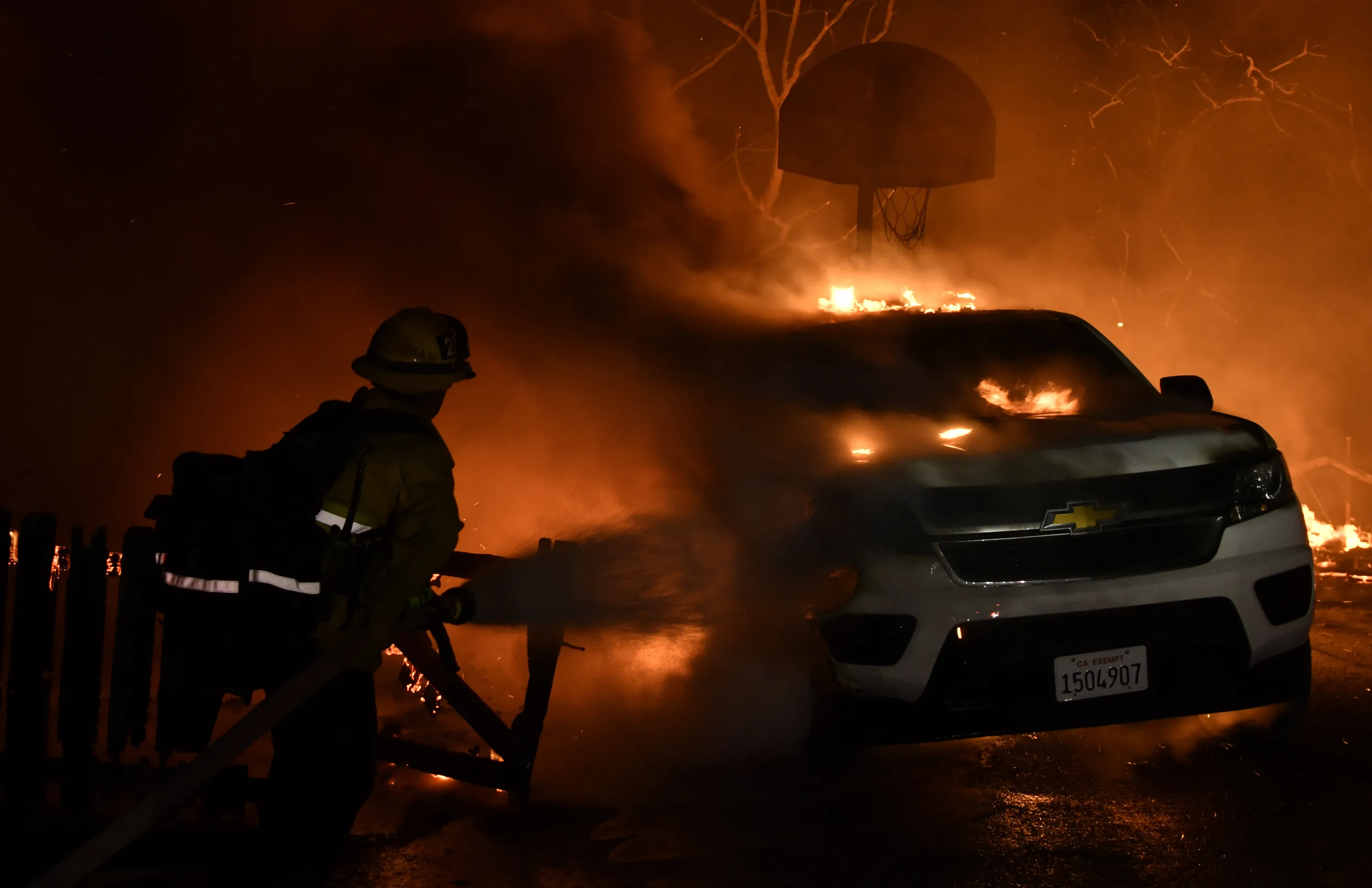 Firefighters battle a santa ana wind-driven brush fire called the Thomas fire that exploded to 31,00 acres with zero percent containment overnight Monday into early Tuesday morning, according to Ventura County fire officials in Santa Paula, Calif., on December 4, 2017. (Photo by Gene Blevins via ZUMA Wire)