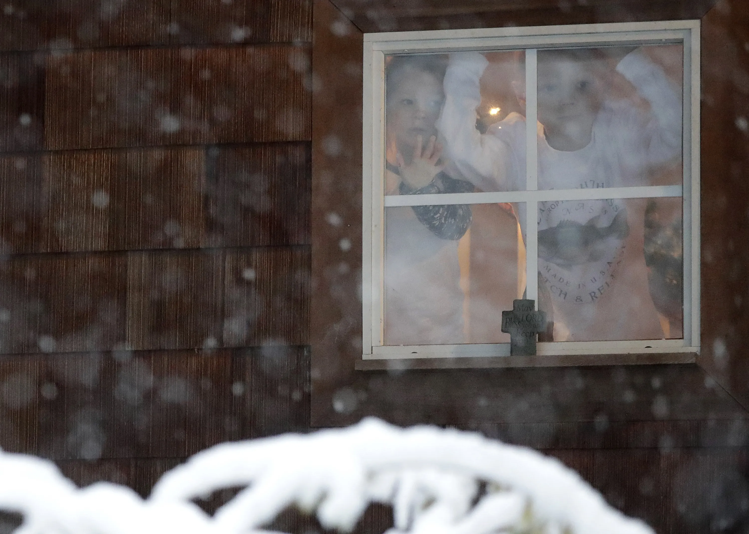 Eden Allen, 3, left, and Josiah Allen, 8, look out their window as a blanket of snow covers the front yard of their home following an early morning snowstorm, Friday, December 8, 2017, in Brandon, Miss. The forecast called for a wintry mix of precipitation across several Deep South states. (Photo by Julio Cortez/AP Photo)