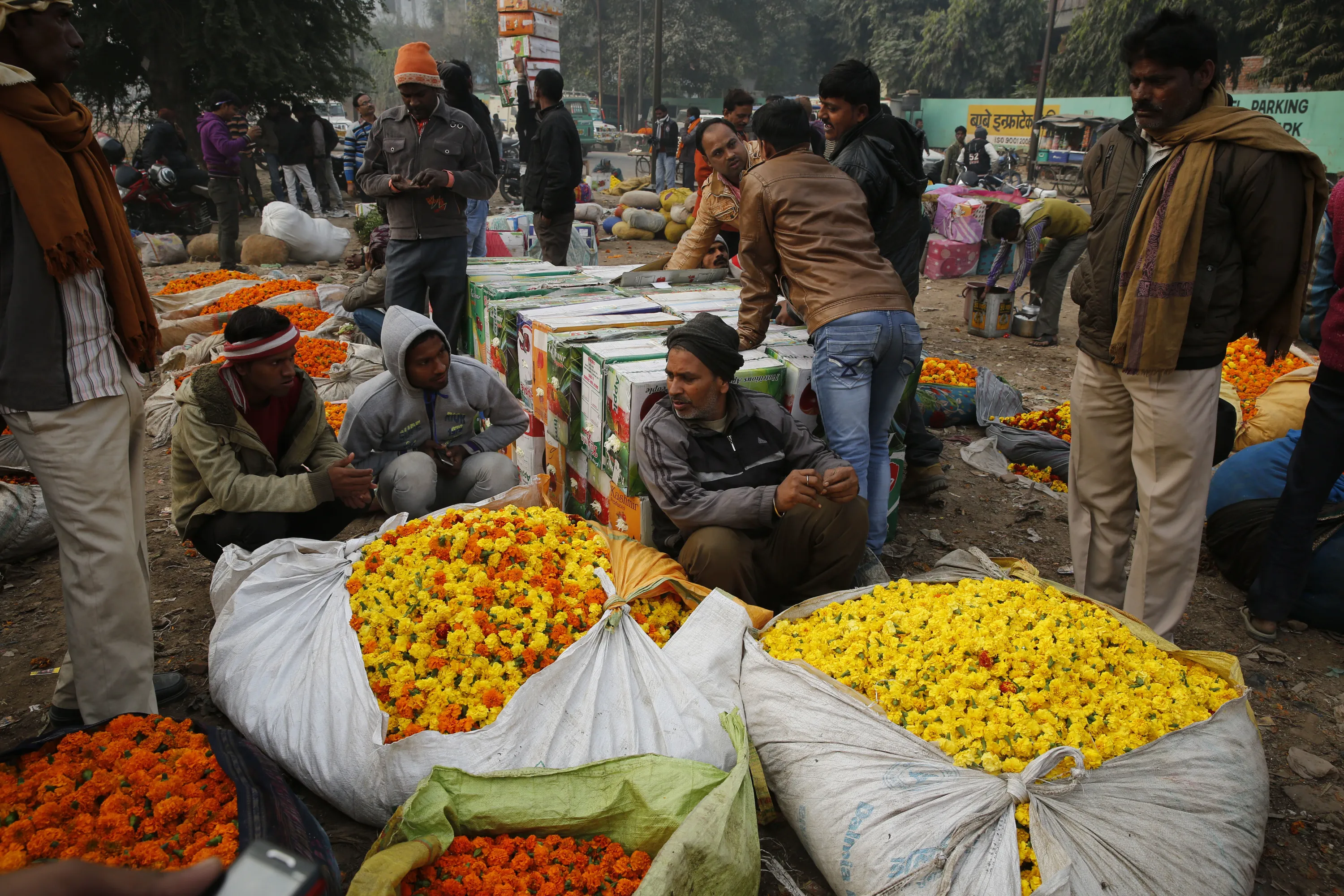 Vendors sell Marigold flowers at a wholesale flower market in Lucknow, Uttar Pradesh, India, Thursday, December 7, 2017. People use marigold flowers for worship in Hindu temples as well as to decorate venues for special occasions. (Photo by Rajesh Kumar Singh/AP Photo)