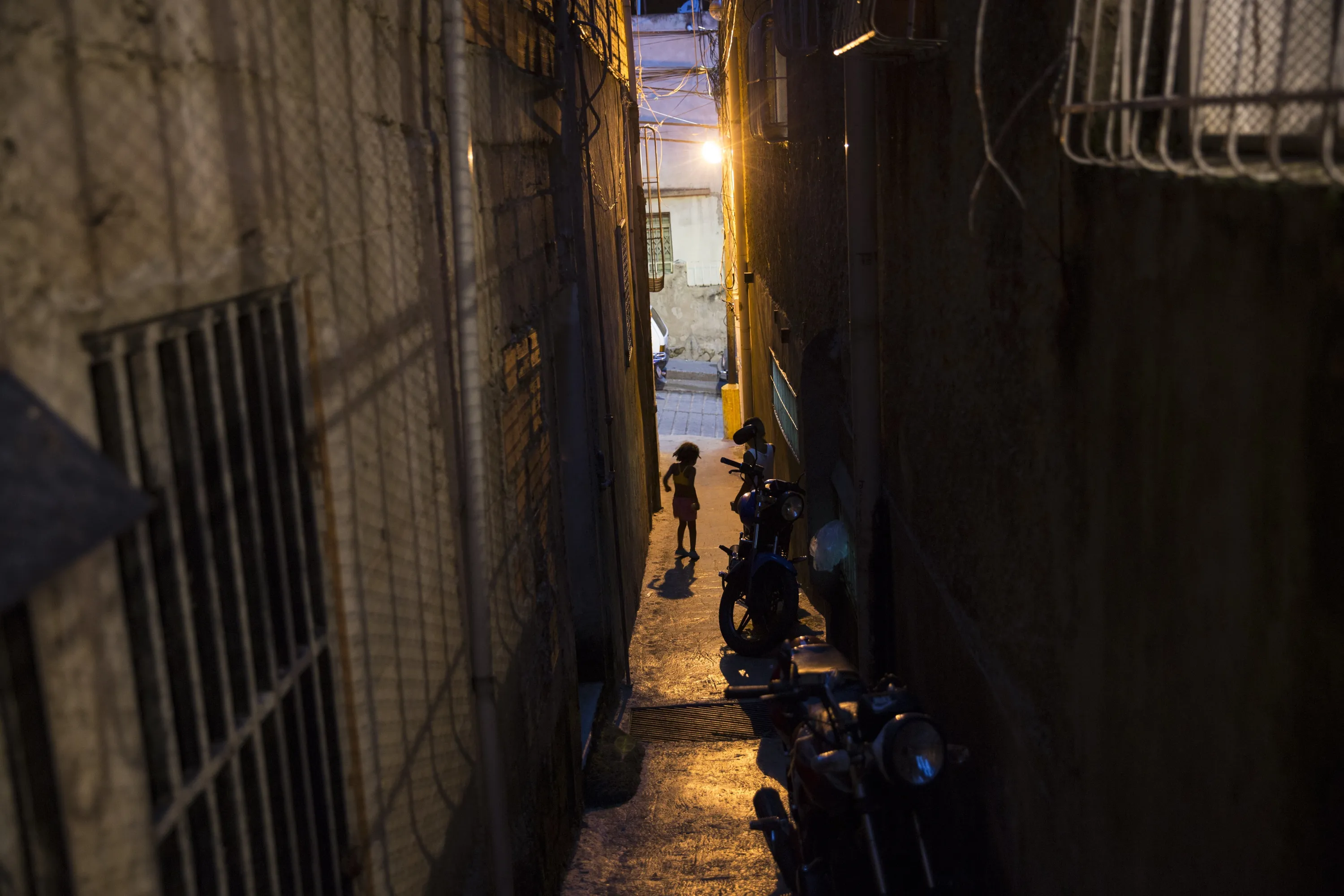 A girl plays amid the corridor between two building in a popular neighborhood in Caracas, Venezuela, Friday, October 20, 2017. (Photo by Rodrigo Abd/AP Photo)