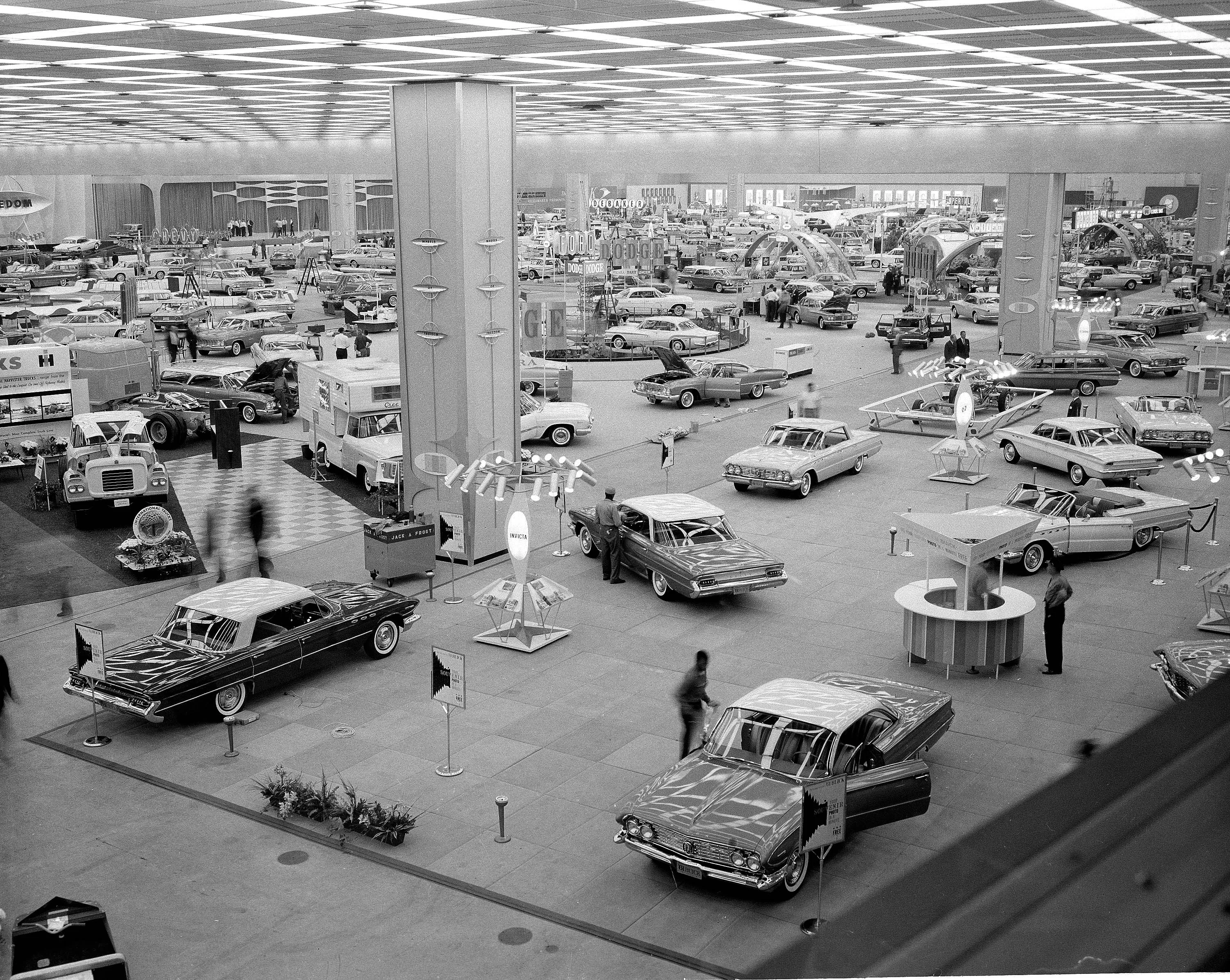 In this October 14, 1960 file photo, people visit the National Auto Show at Cobo Hall in Detroit. In 2013, more than 795,000 people, including 5,200 journalists from around the world attended the show. (Photo by AP Photo)