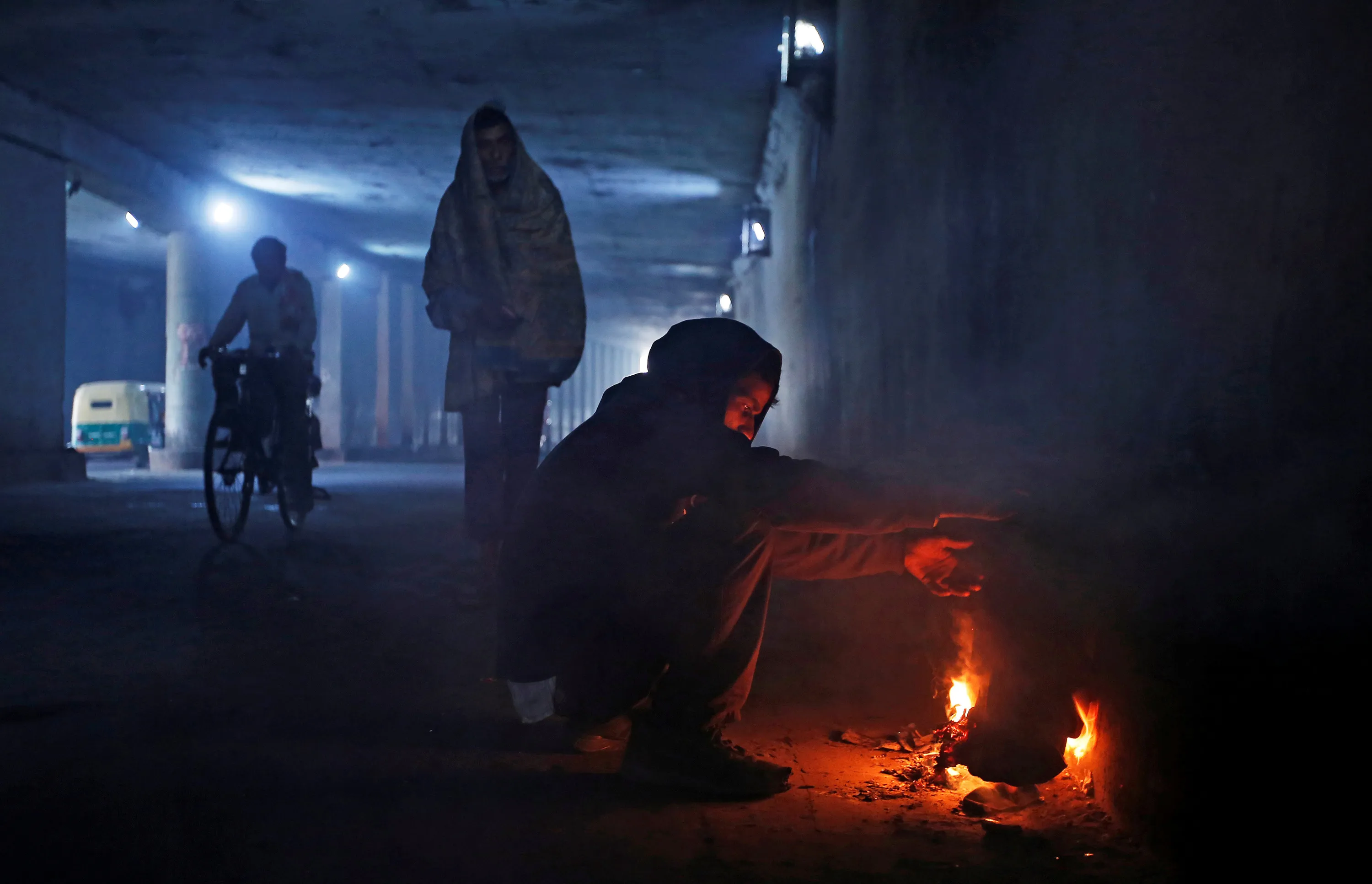 A man warms himself by a fire along a road on a cold winter morning in New Delhi, India, December 13, 2017. (Photo by Adnan Abidi/Reuters)