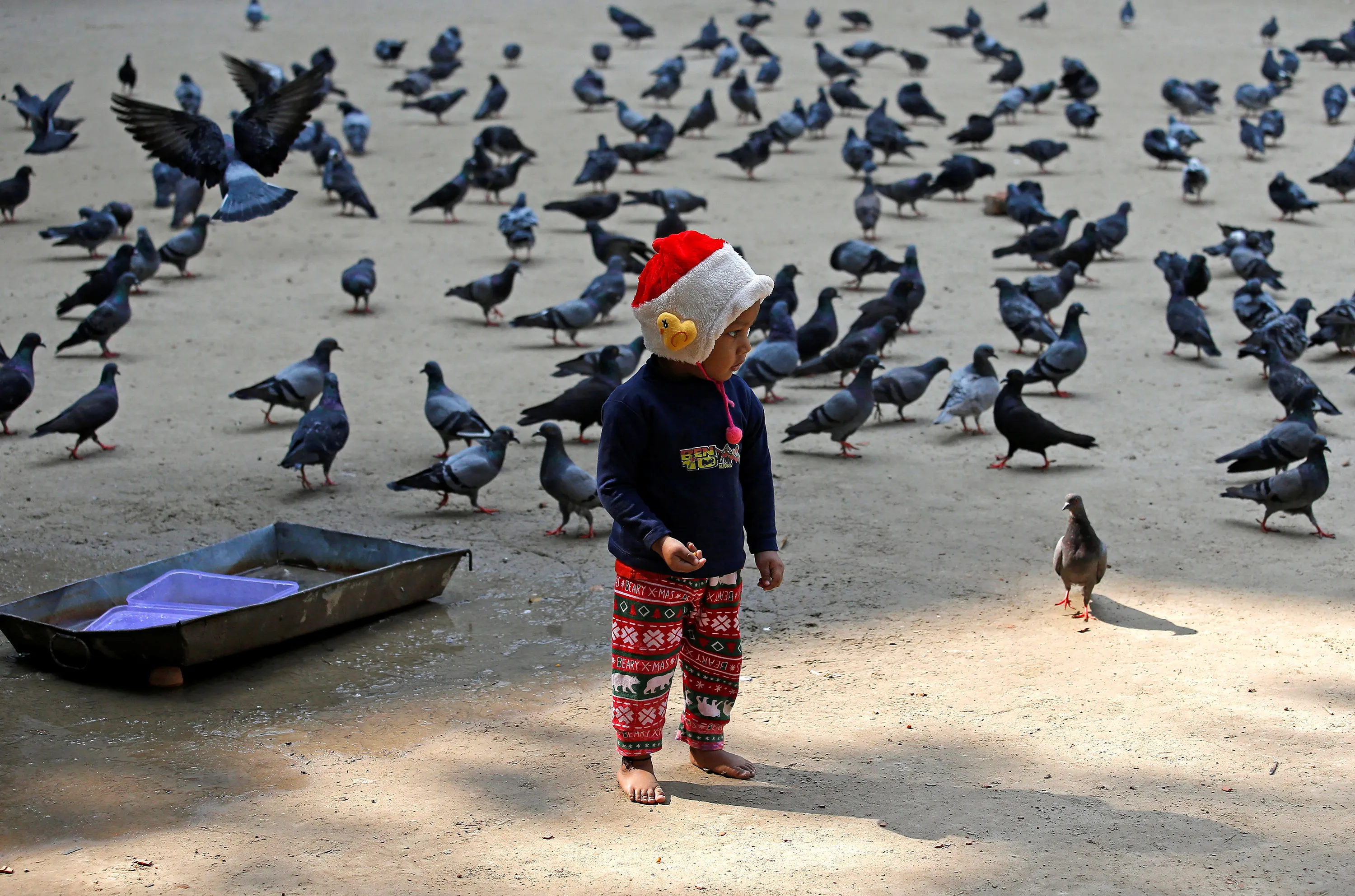 A boy feeds pigeons on a cold winter morning in Kolkata, India, November 29, 2017. (Photo by Rupak De Chowdhuri/Reuters)