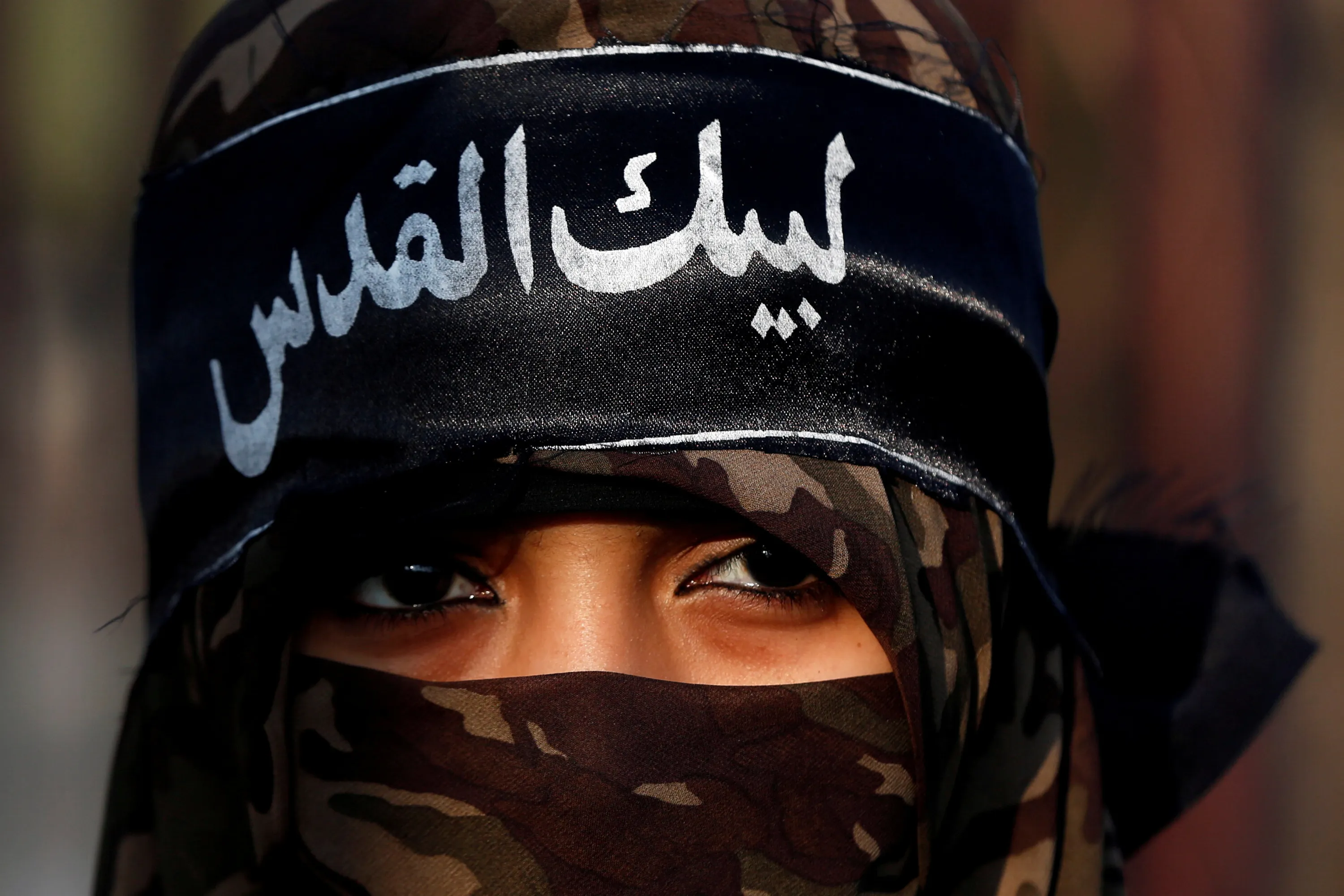 A supporter of religious and political party Jamaat-e-Islami (JI) wears a head band that reads in Urdu, “I am here Al Quds” as she attends a rally against U.S. President Donald Trump's decision to recognize Jerusalem as the capital of Israel, in Karachi, Pakistan December 17, 2017. (Photo by Akhtar Soomro/Reuters)