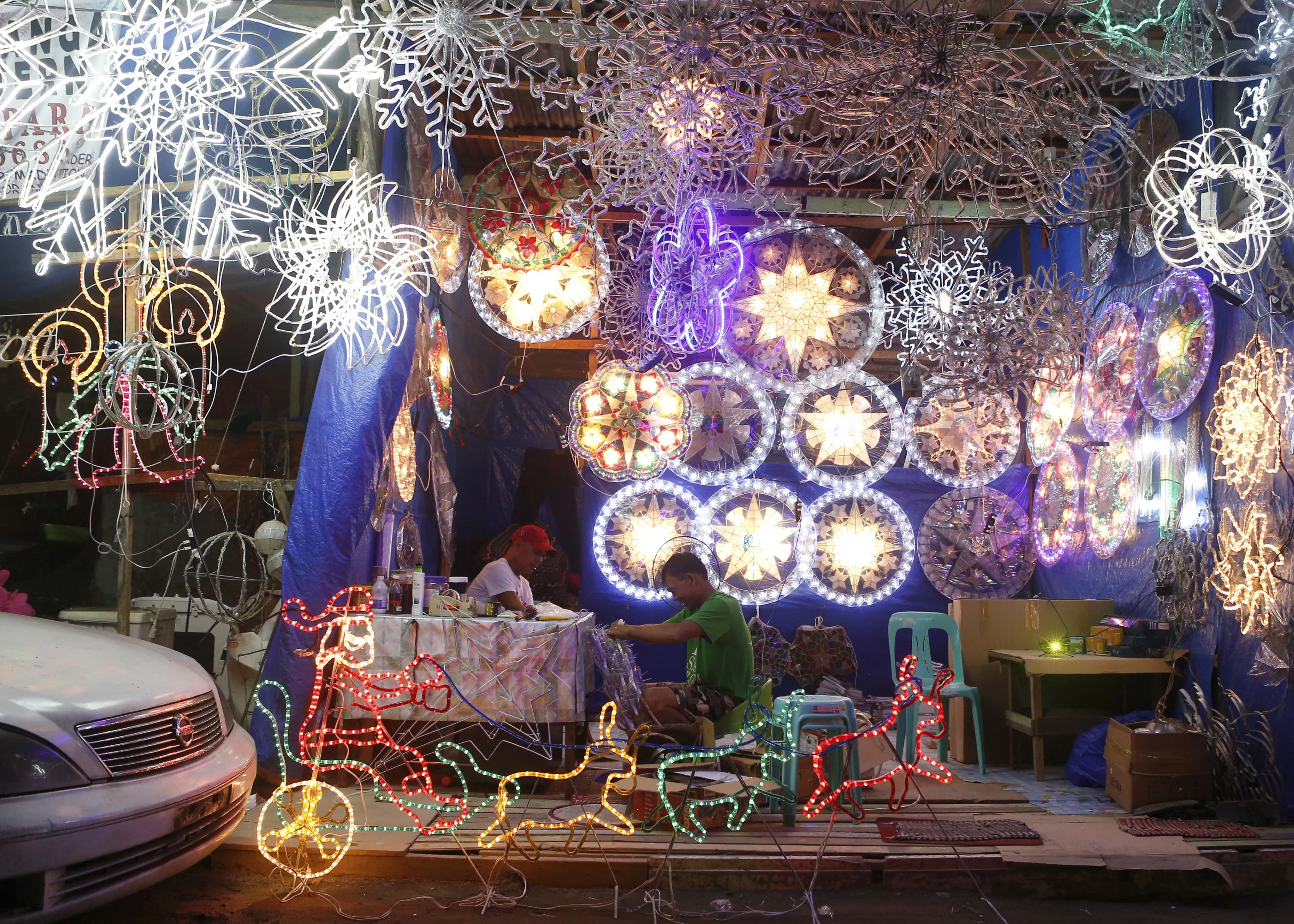 In this December 9, 2017, photo, lantern makers work on traditional Christmas lanterns locally known as “parols” in a side street shop in Manila, Philippines. These small lanterns traditionally decorate many Filipino homes during the Christmas holidays. (Photo by Iya Forbes/AP Photo)