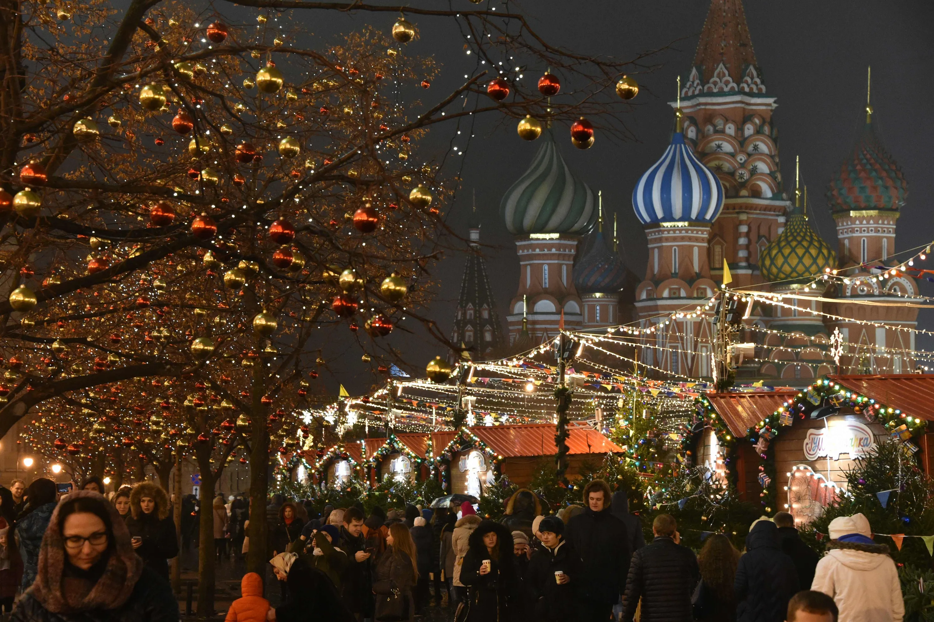 People walk along a Christmas market on the Red Square in Moscow on December 16, 2017. (Photo by Vasily Maximov/AFP Photo)