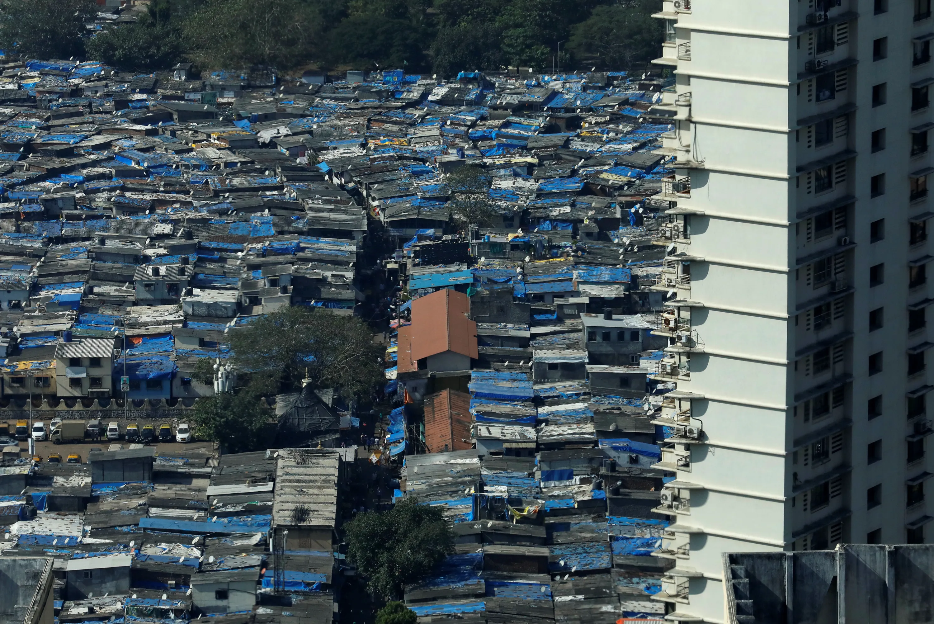 A high rise residential building is seen next to a slum in Mumbai, India, December 20, 2017. (Photo by Danish Siddiqui/Reuters)