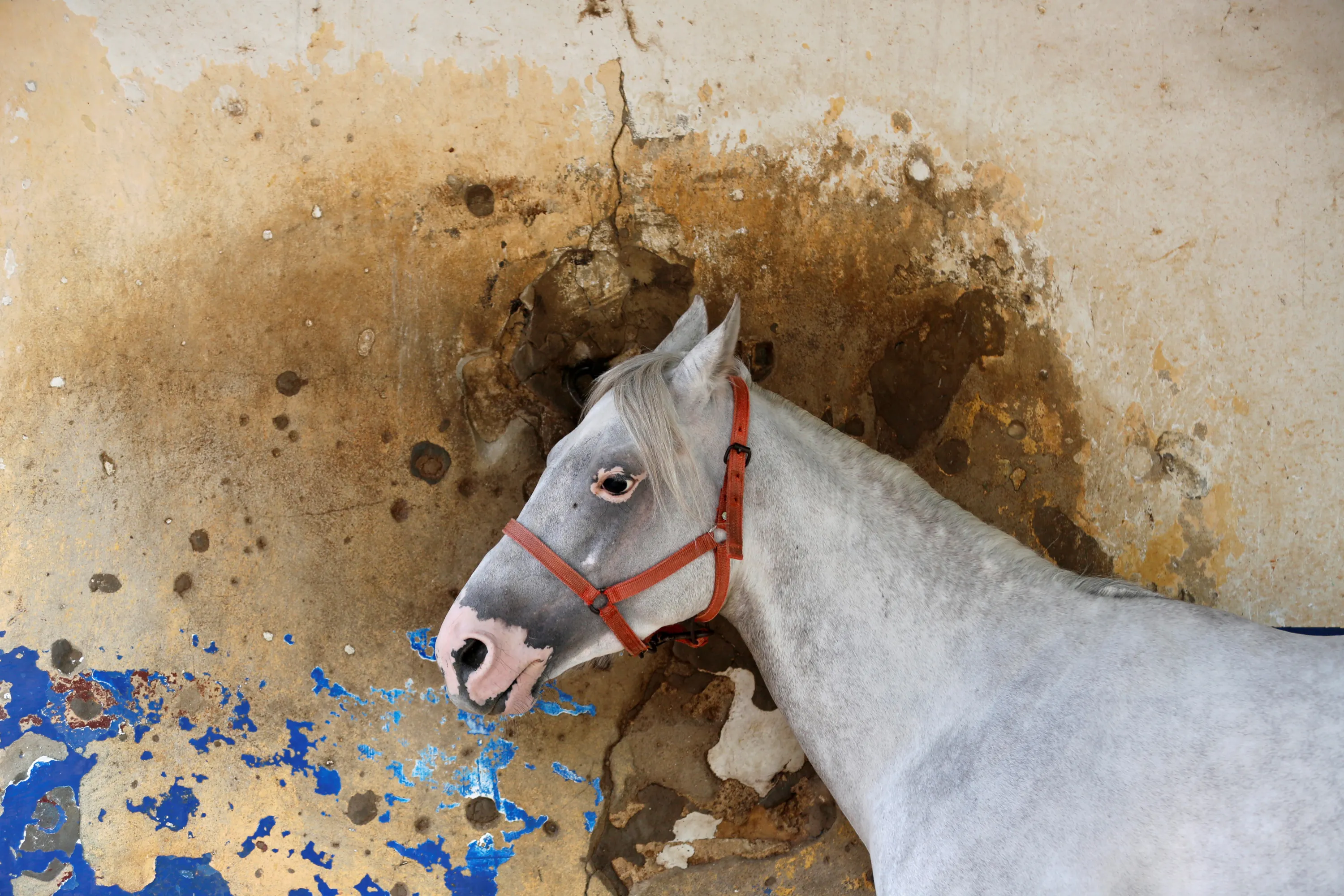 A horse stands in front a bullet-riddled wall at Beirut Hippodrome, Lebanon, April 30, 2017. (Photo by Jamal Saidi/Reuters)