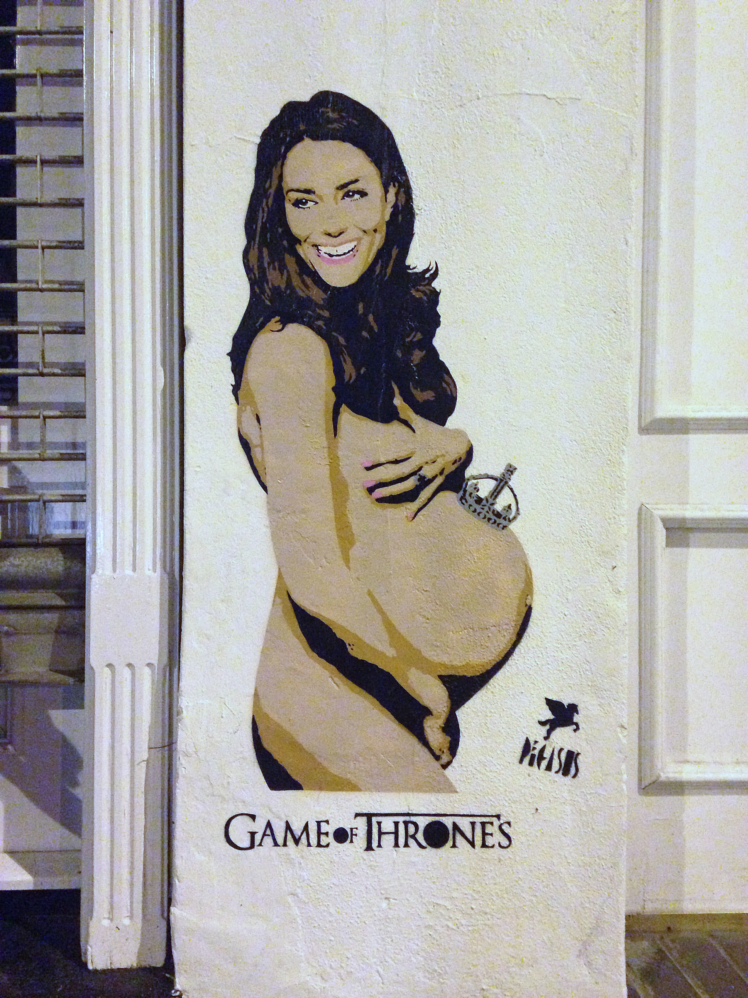 Pregnant Kate Middleton poses semi-naked – in the latest work by street artist, Pegasus, 2014. The artist, who has been dubbed “the new Banksy”, unveiled his latest creation on a North London wall. (Photo by Splash News and Pictures/Pegasus)